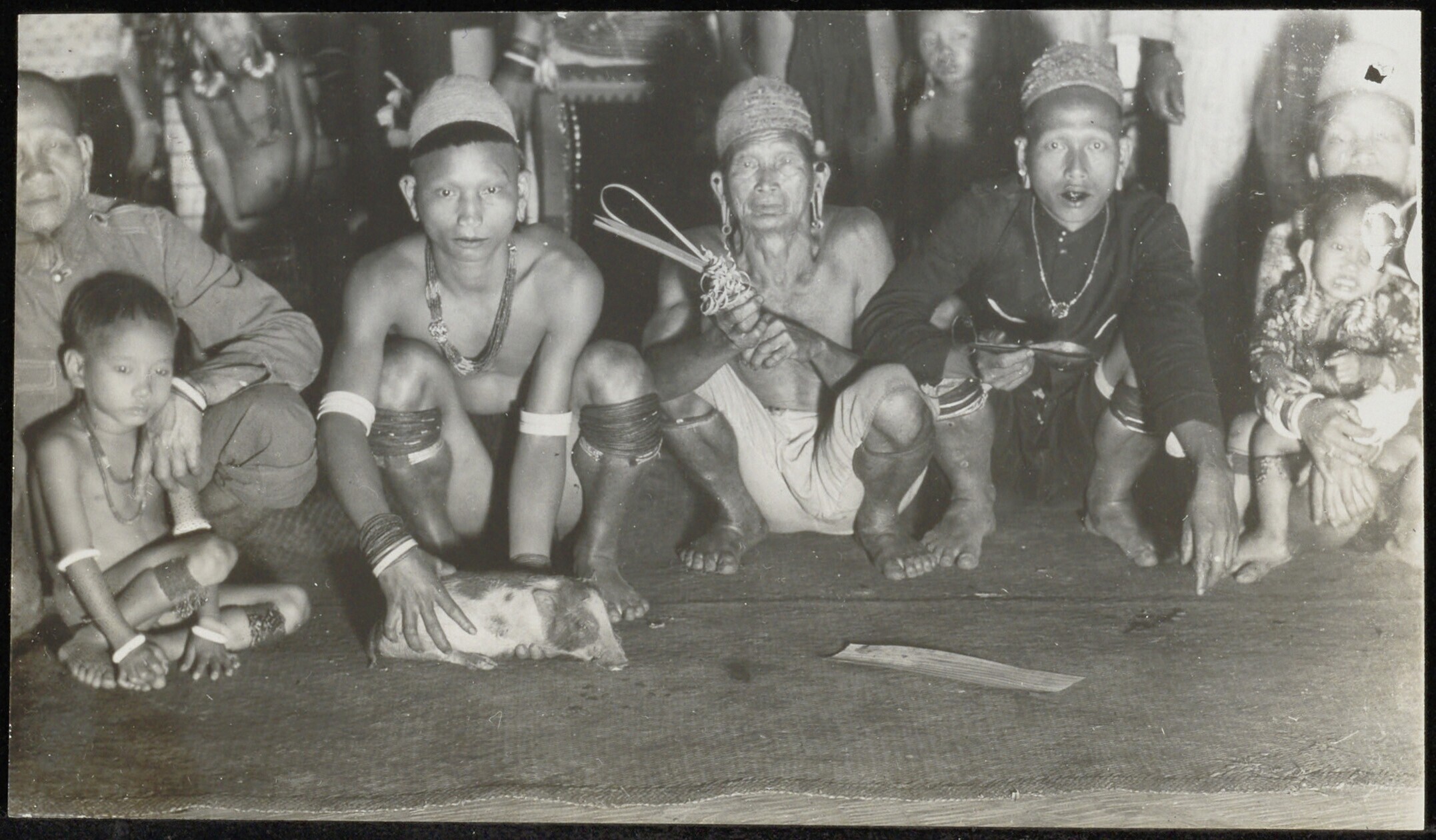 Dayaks met nog levend varkentje