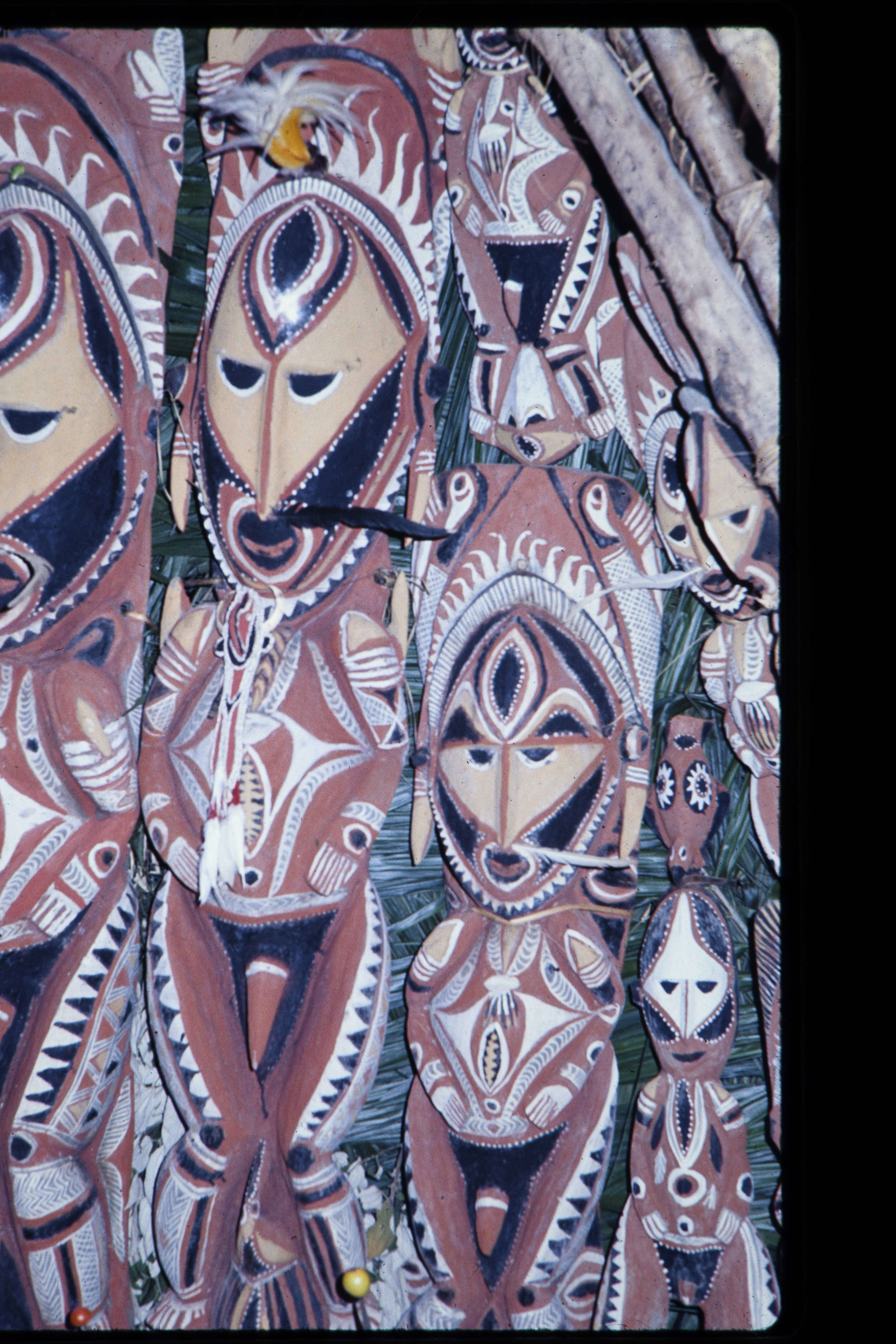 Flash opnamen van drummers in het nieuwe Tambaram huis Malpinbim in Kalabu tijdens de inwijding op zaterdag 1 Juli. Daarna flash opnamen van de opstelling der beelden tegen de beide zijden van de achterwand. Toont duidelijk dat voor verkoop beschikbare be