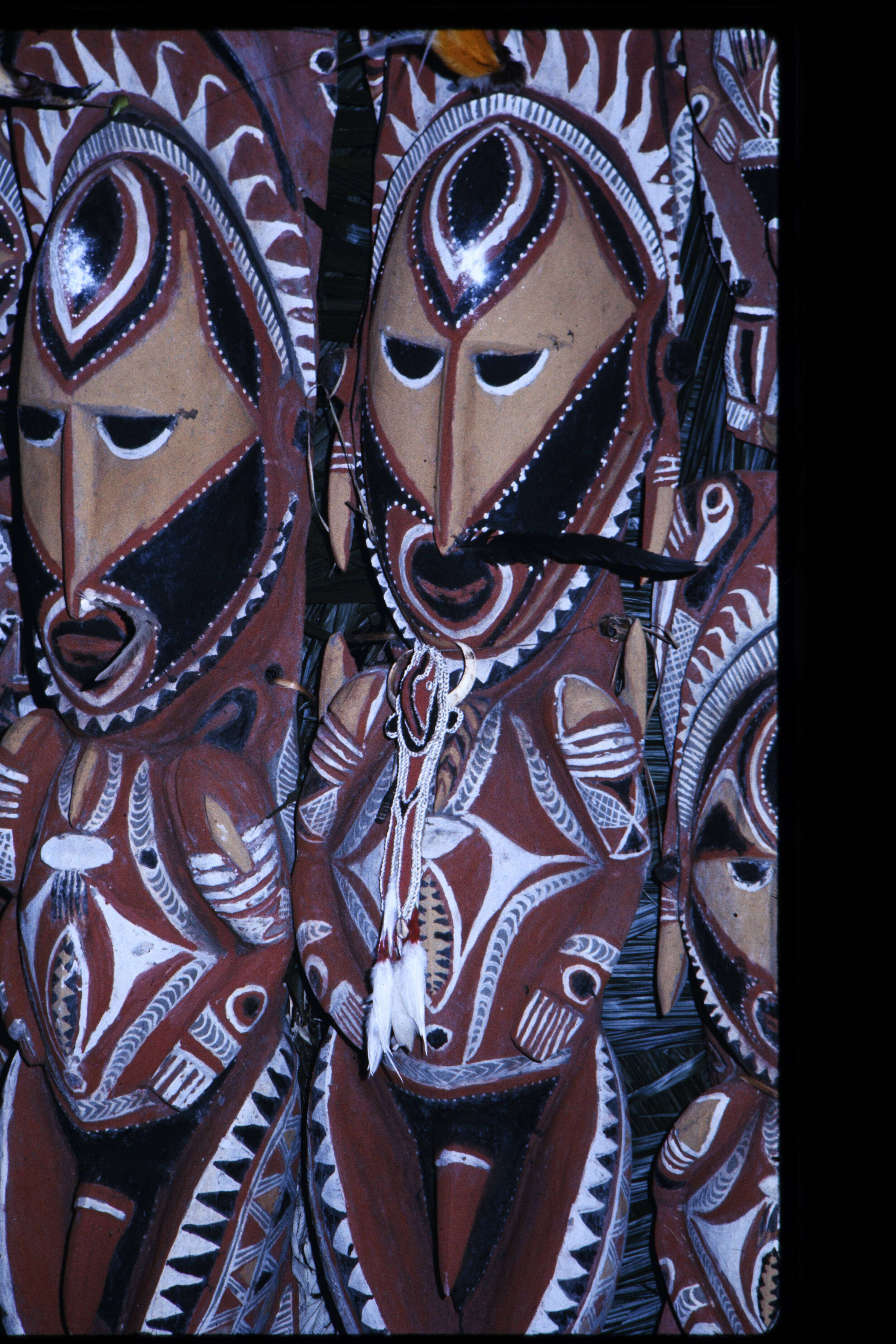 Detail of two of the large ancestor figures displayed in the back of the new maira Malpinbim, village Kalabu at the occasion of its inauguration on 1 July 1967. (see also No 25, 27, 28, 29).