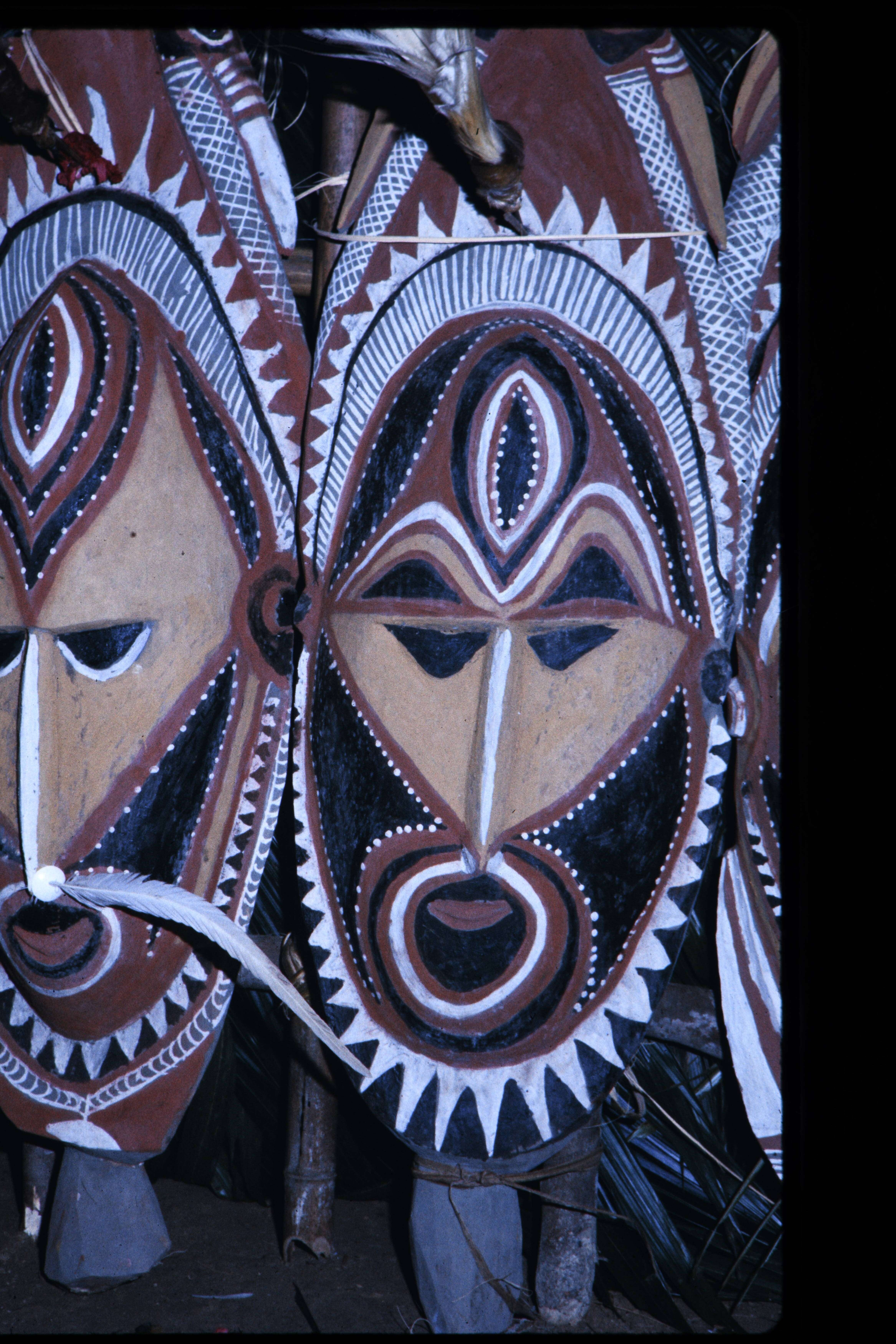 Flash opnamen van drummers in het nieuwe Tambaram huis Malpinbim in Kalabu tijdens de inwijding op zaterdag 1 Juli. Daarna flash opnamen van de opstelling der beelden tegen de beide zijden van de achterwand. Toont duidelijk dat voor verkoop beschikbare be