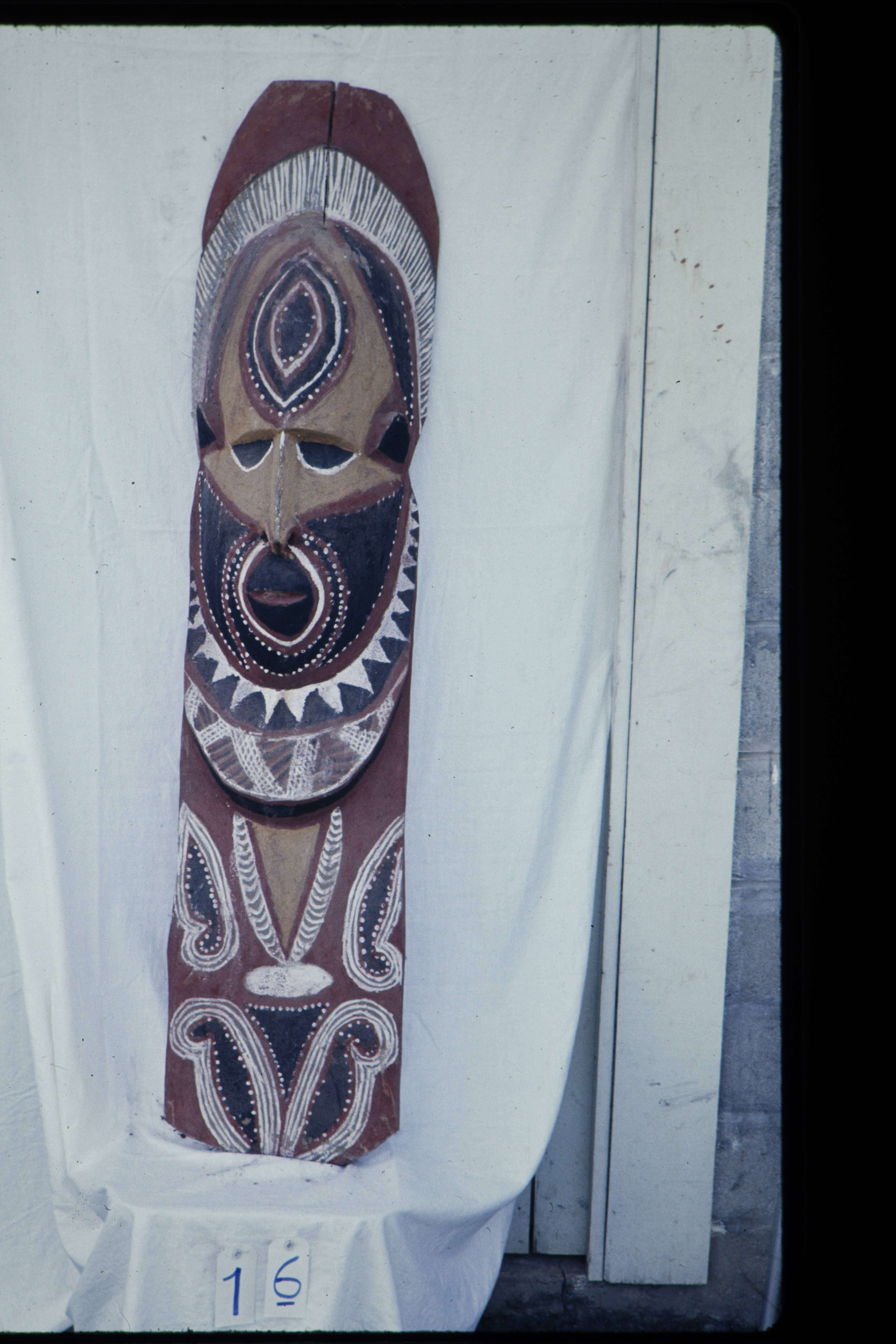 Plank met mensengezicht, uit Apangai. H 4' 5" $ 6.00.