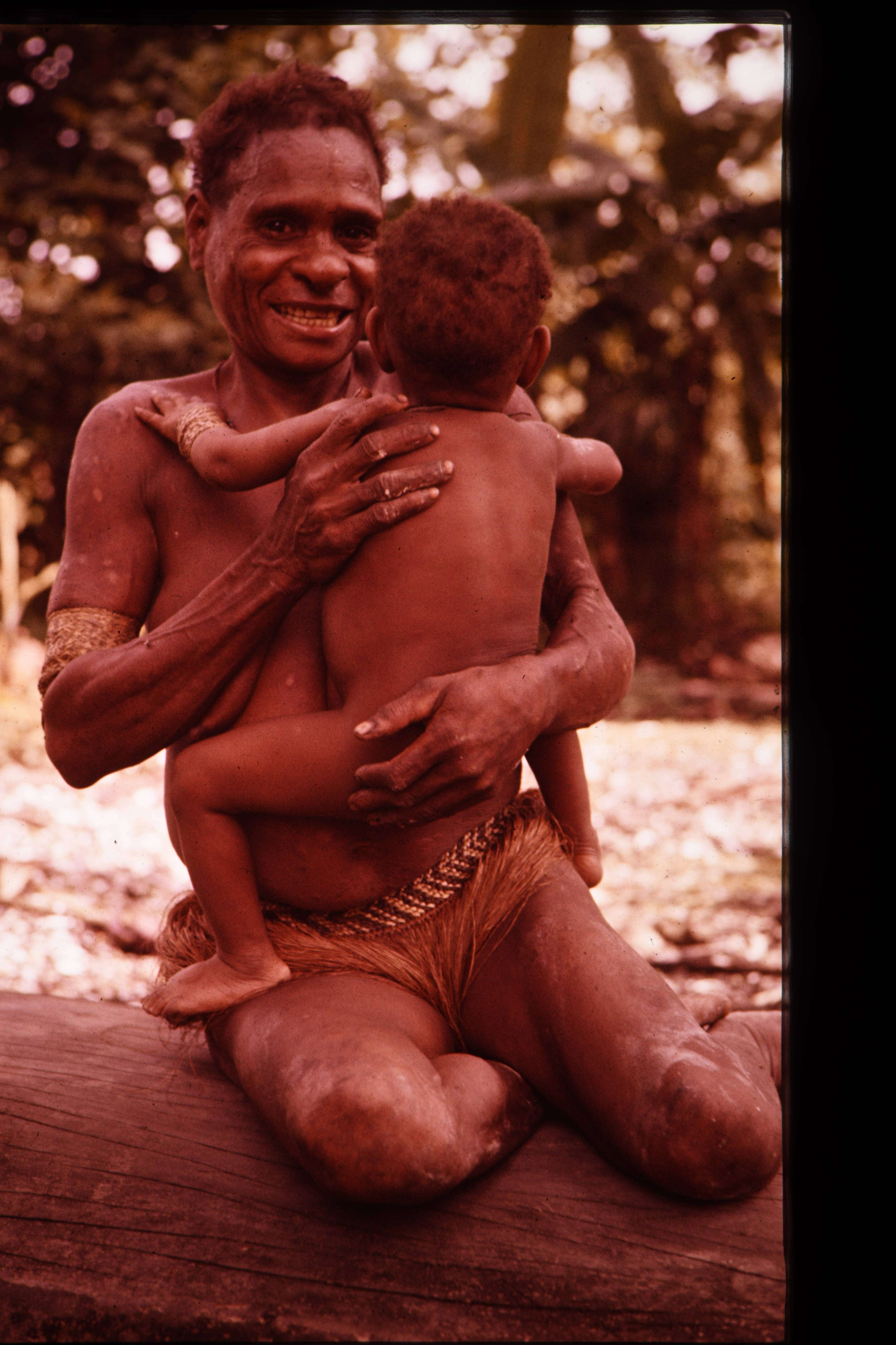 Sistar, op arm van Toworowut, moeder, vrouw van Tarras. T. zittend, kindje bang wegkijkend.