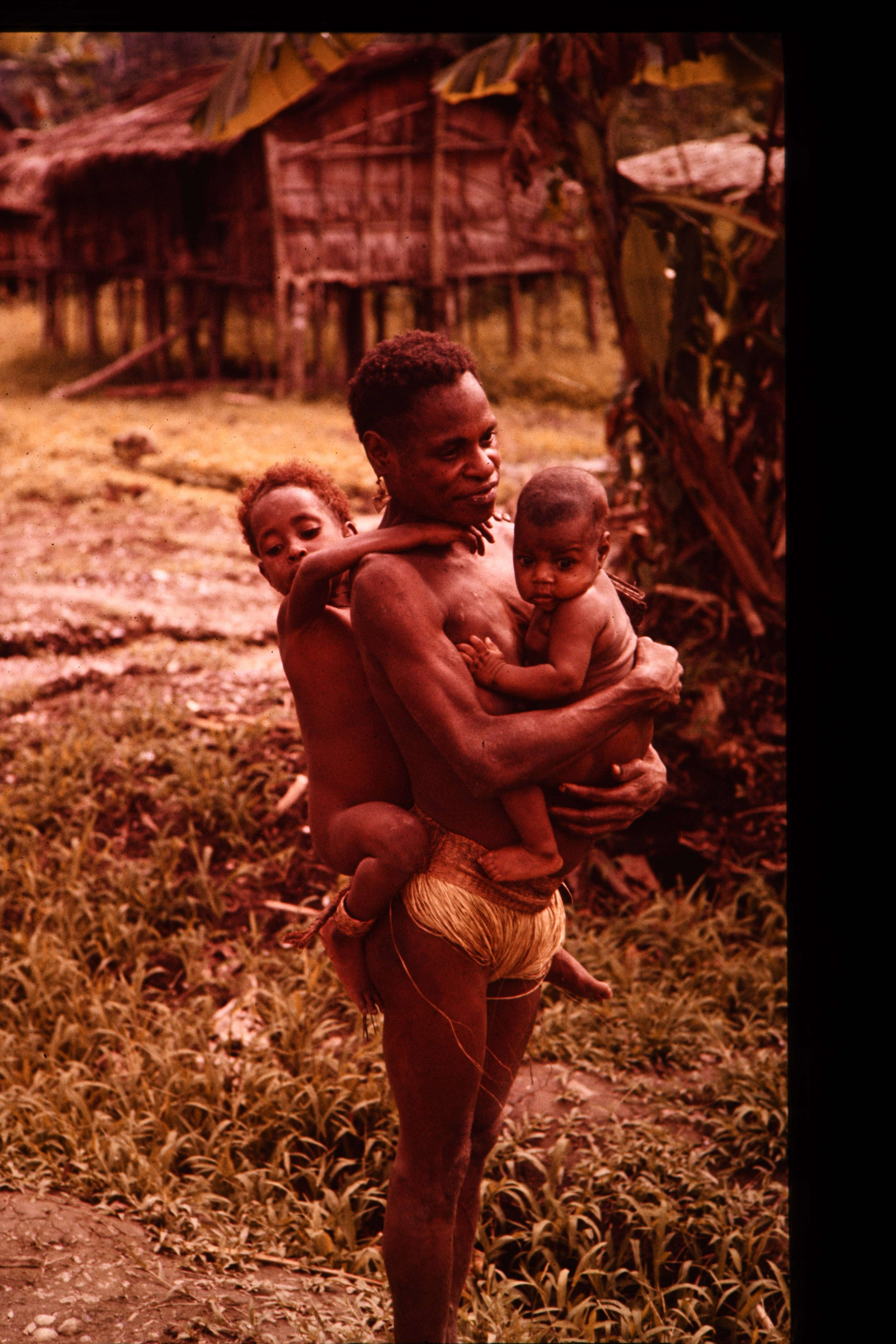 Arabmijef met een kind voor en een op de rug. 10 feb. 1961.