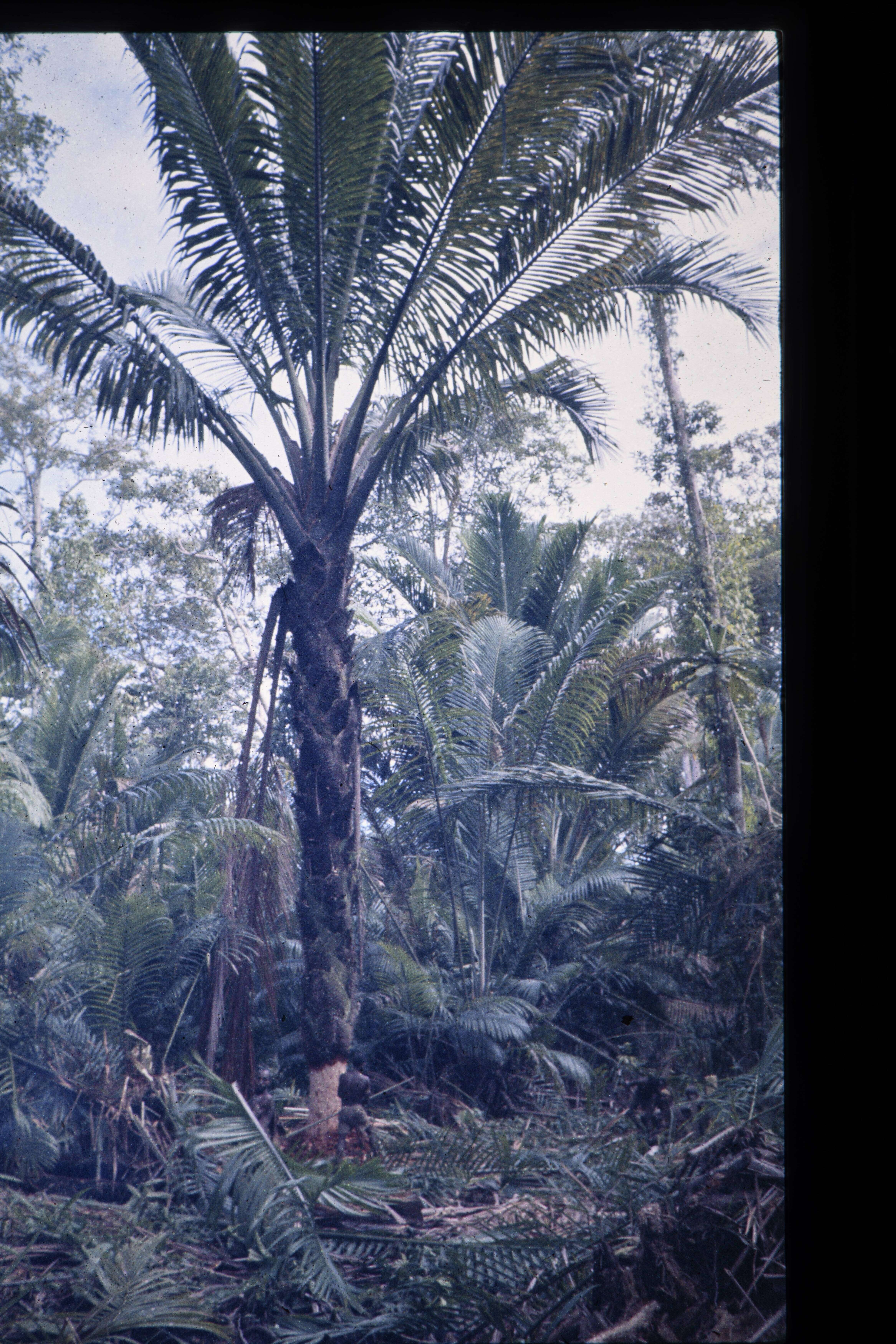 De sagoboom in totaal van Matjemosj met schoongekapte voorgrond.