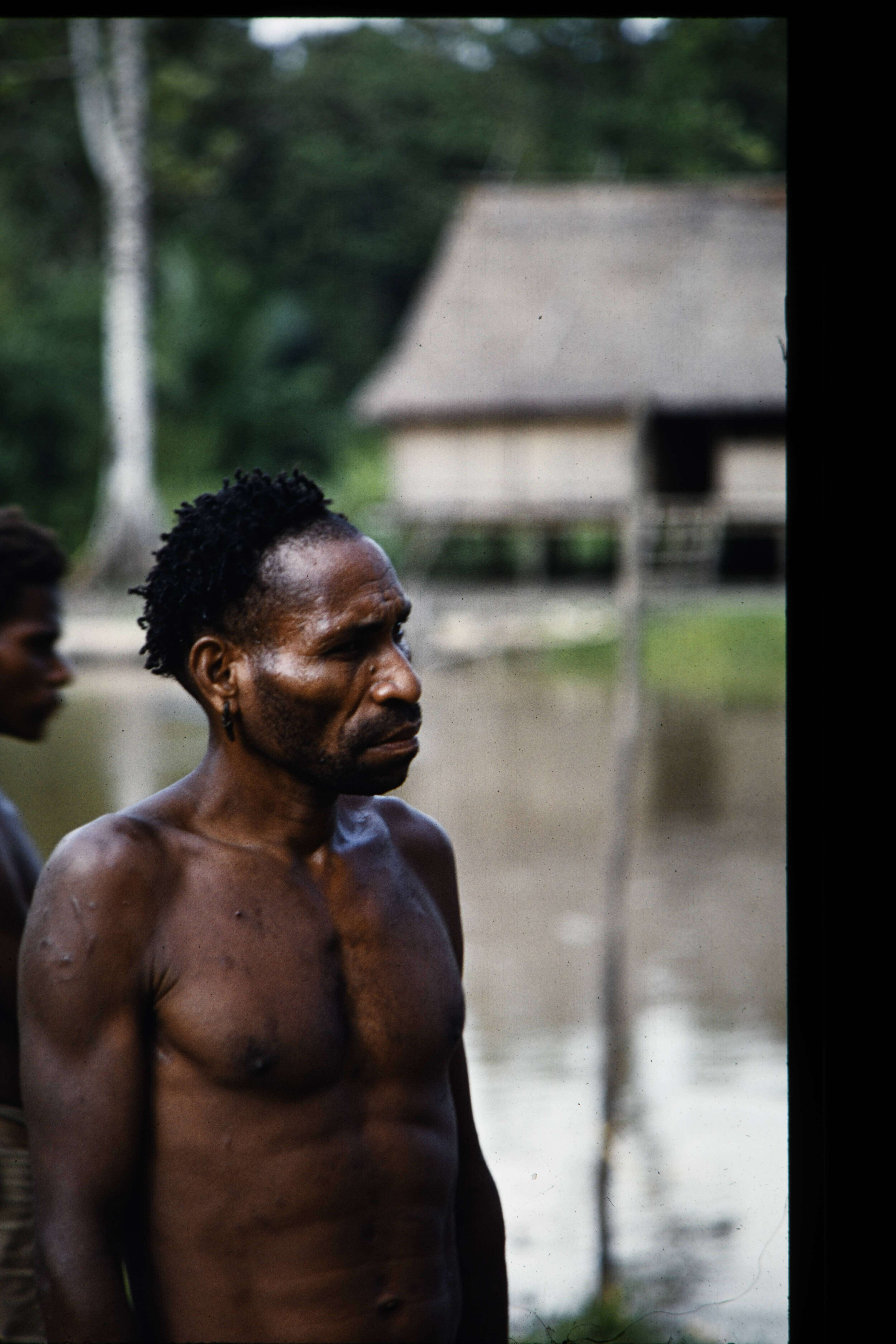 Portretten van man met schelpen borsthanger, 7april. Komensei.