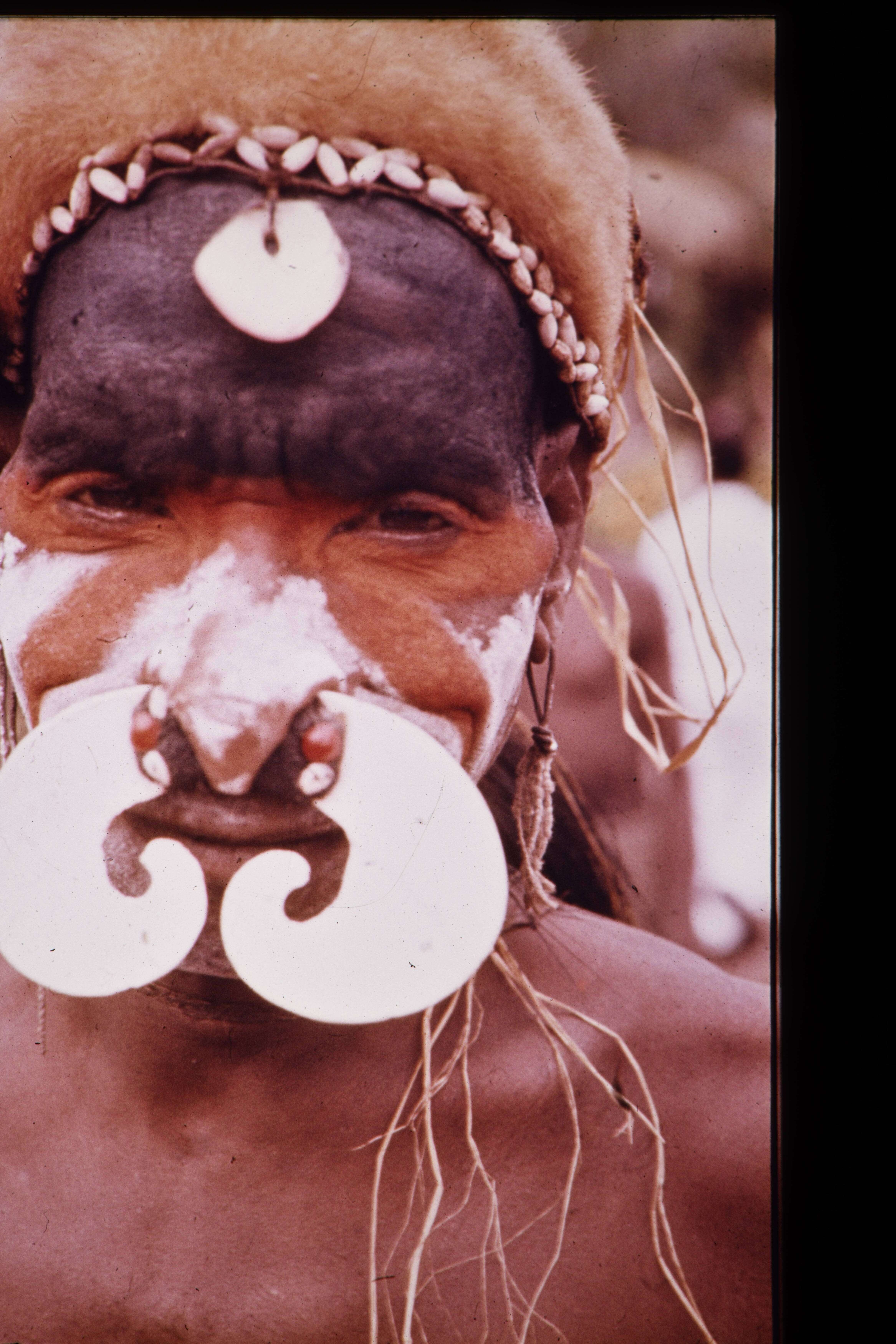 Kop met kleur (rood + zwart), hoofdband + biparew. Tjawuttjamaq, kampong Der.