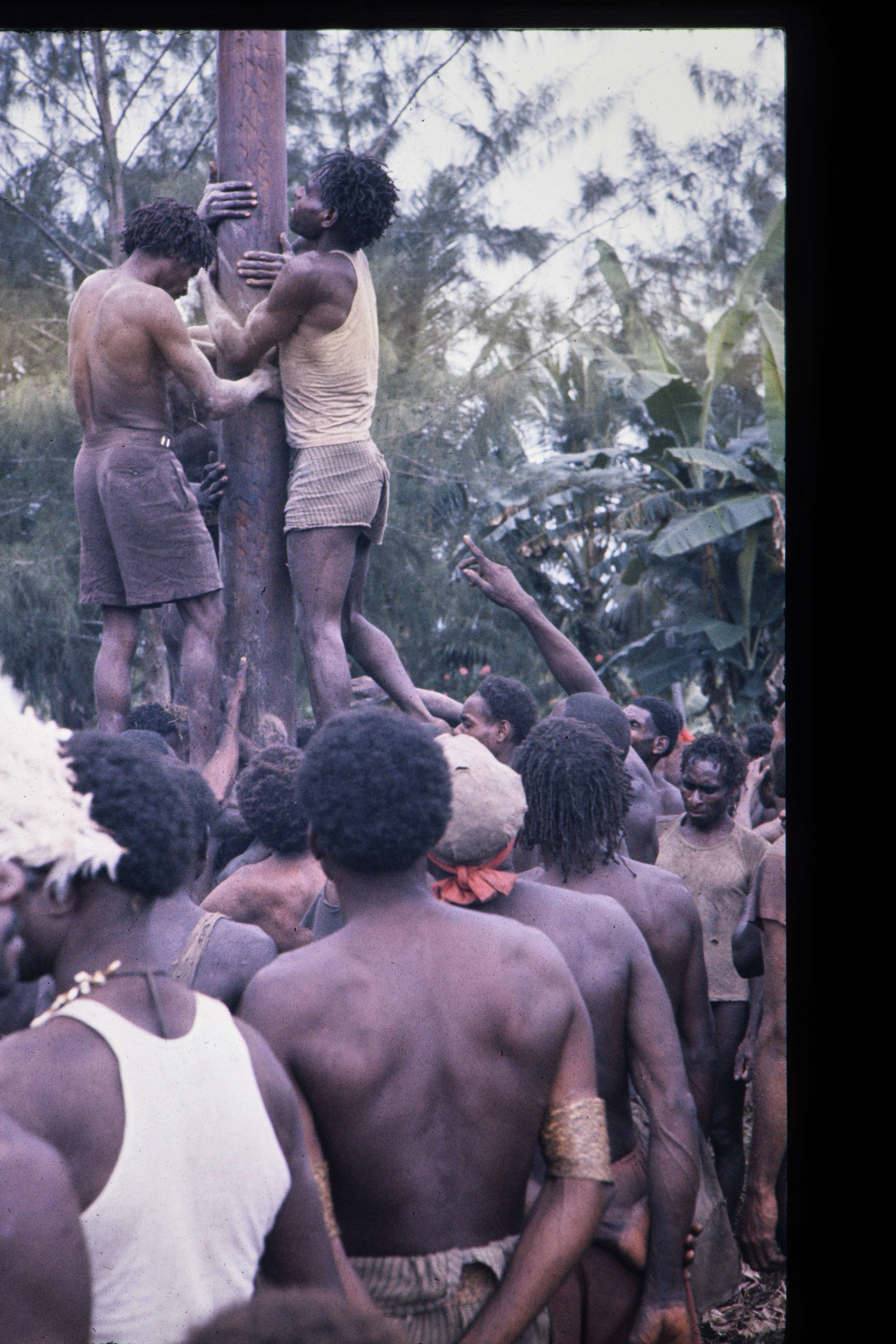 Paalklimmen Ammanamgai K.feest Agats 1 mei 1961.