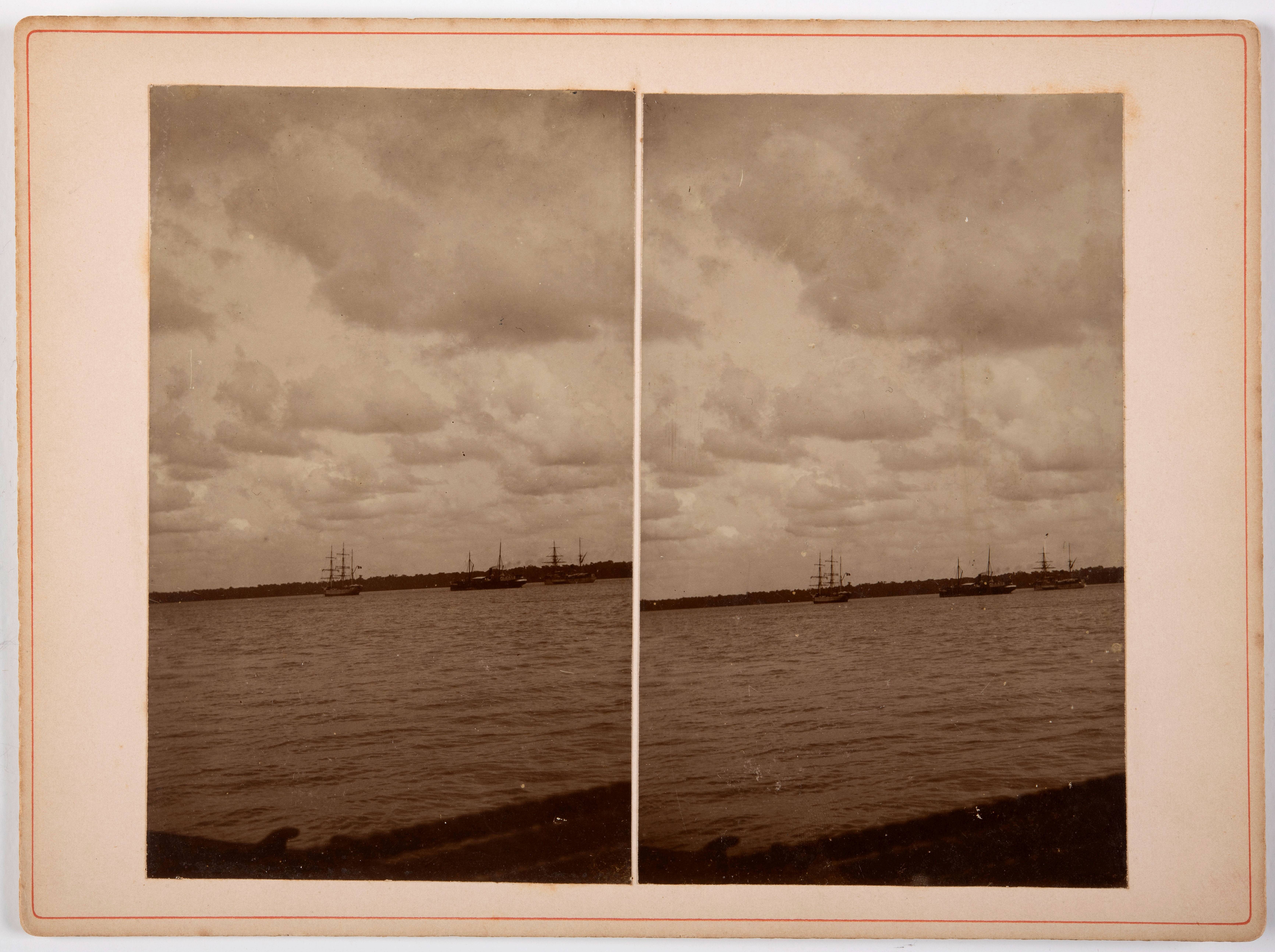Schepen op de rede van St. Laurent aan de Marowijne-rivier, Frans-Guyana