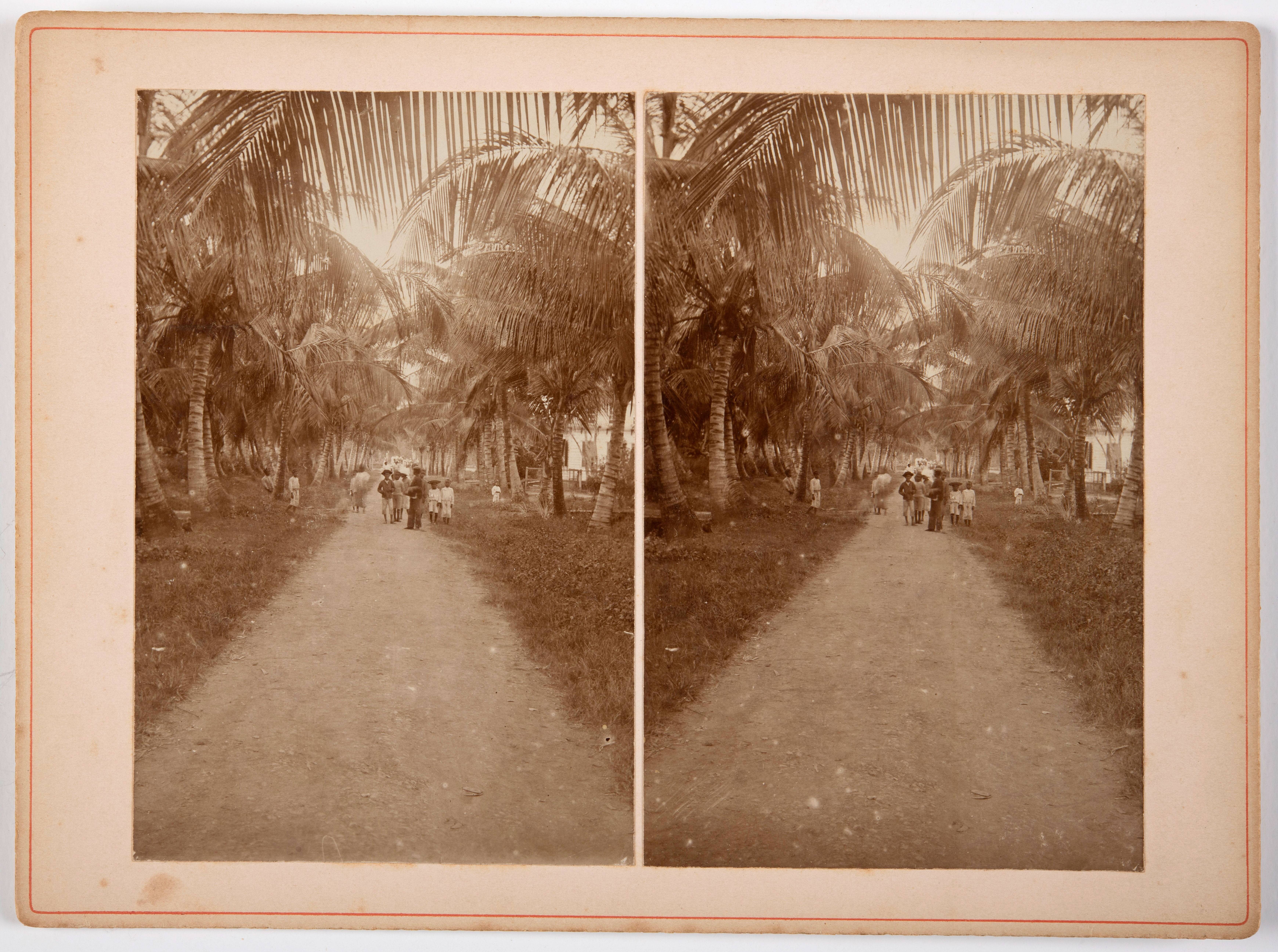 Voetgangers in de Cocospalmenlaan in Nickerie, Suriname