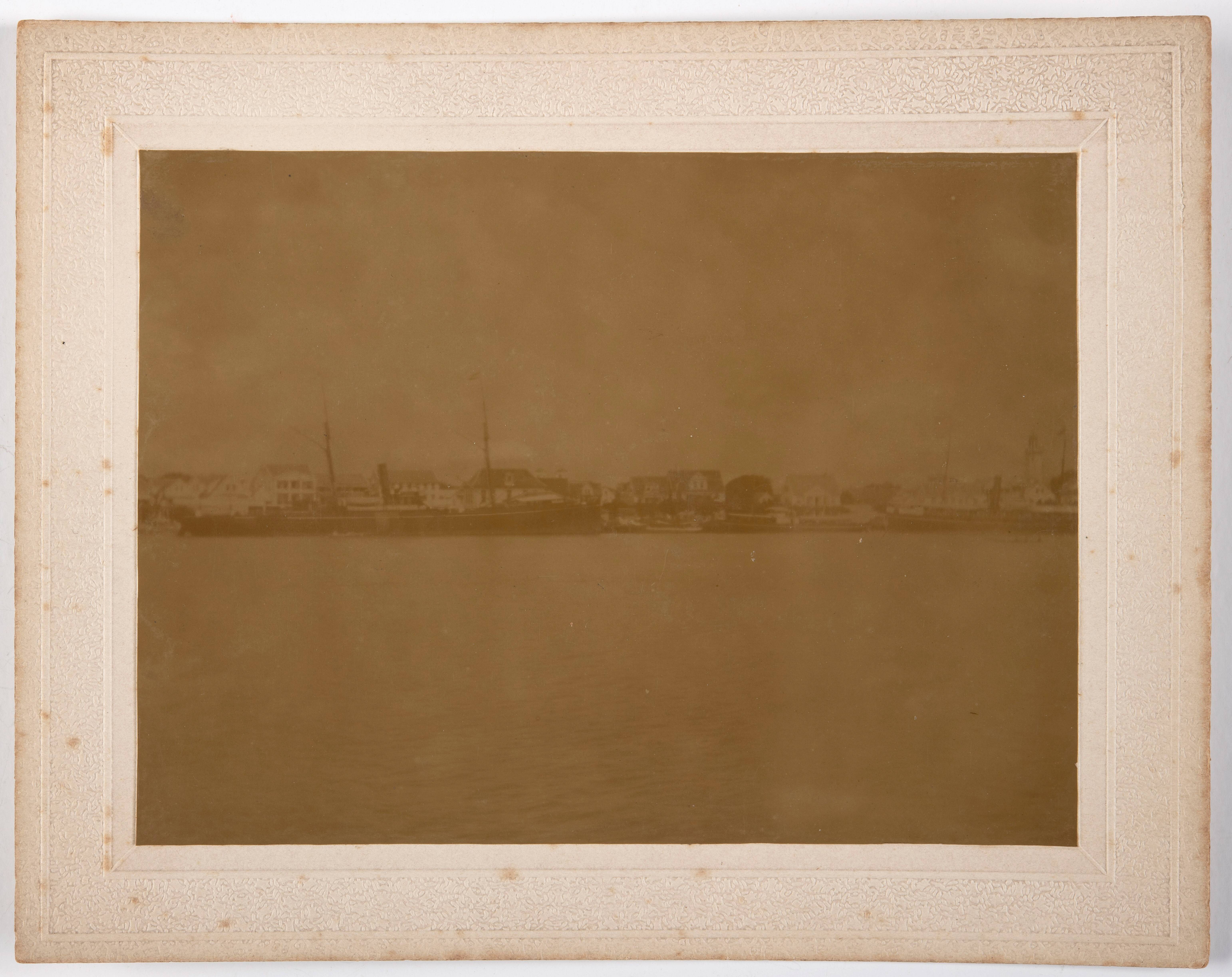 Een Engelse Mailboot gezien vanaf de Suriname rivier op Paramaribo