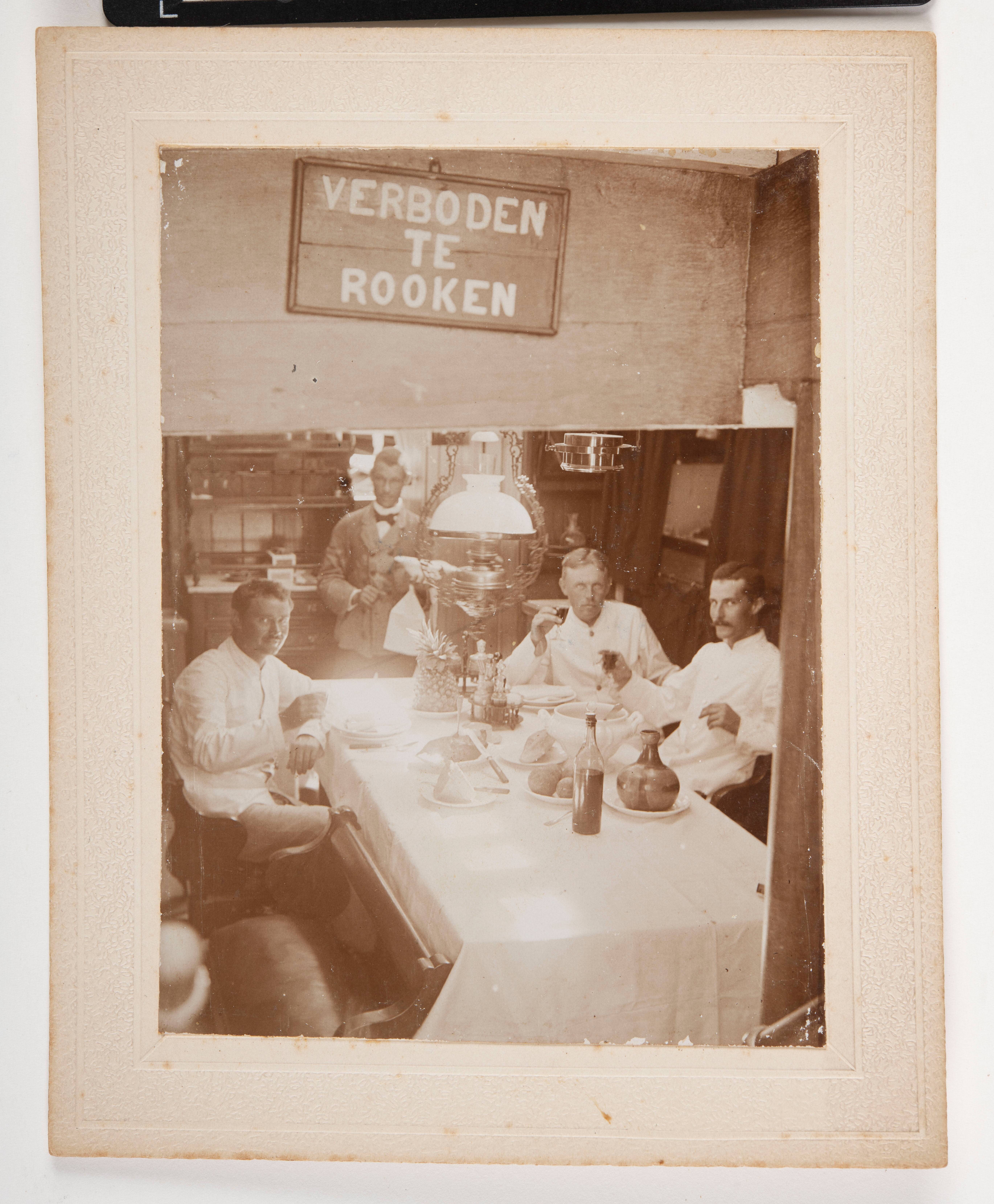 Kajuit van de schoener 'Nickerie' gezien tijdens een maaltijd
