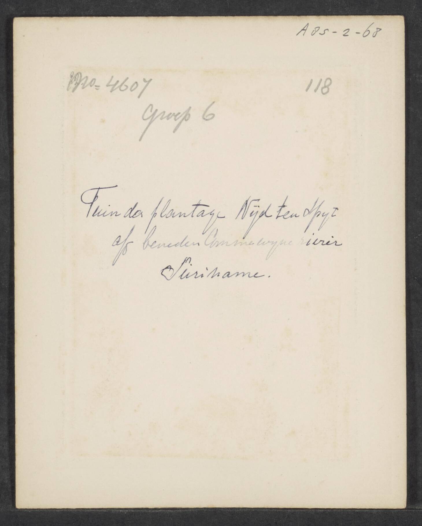 De tuin van de plantage 'Nijdtenspijt' aan de Benlen Commewijne-rivier, Suriname