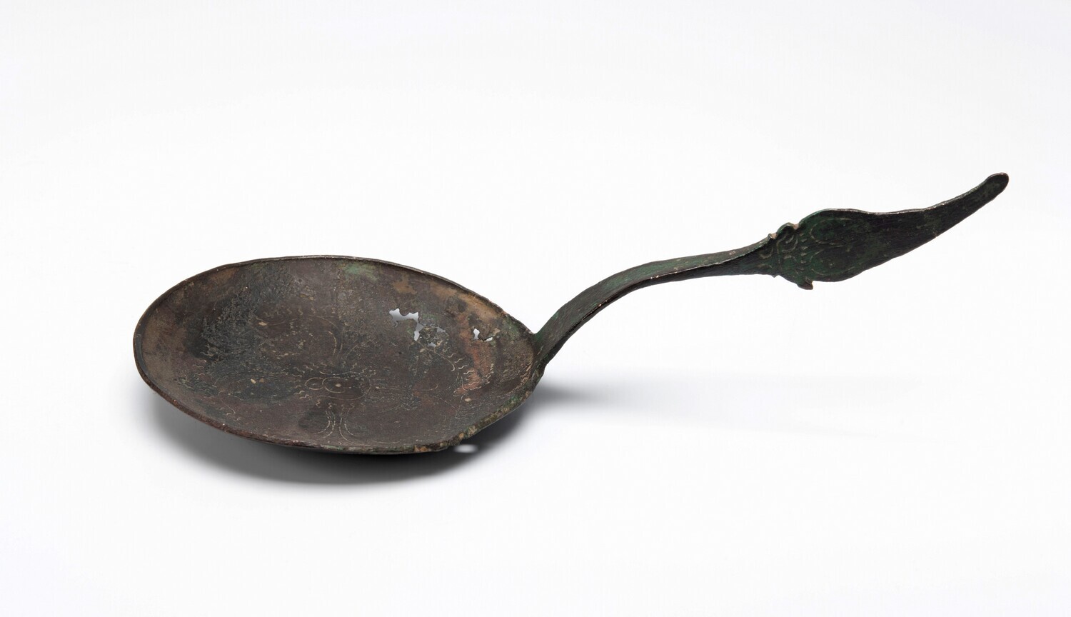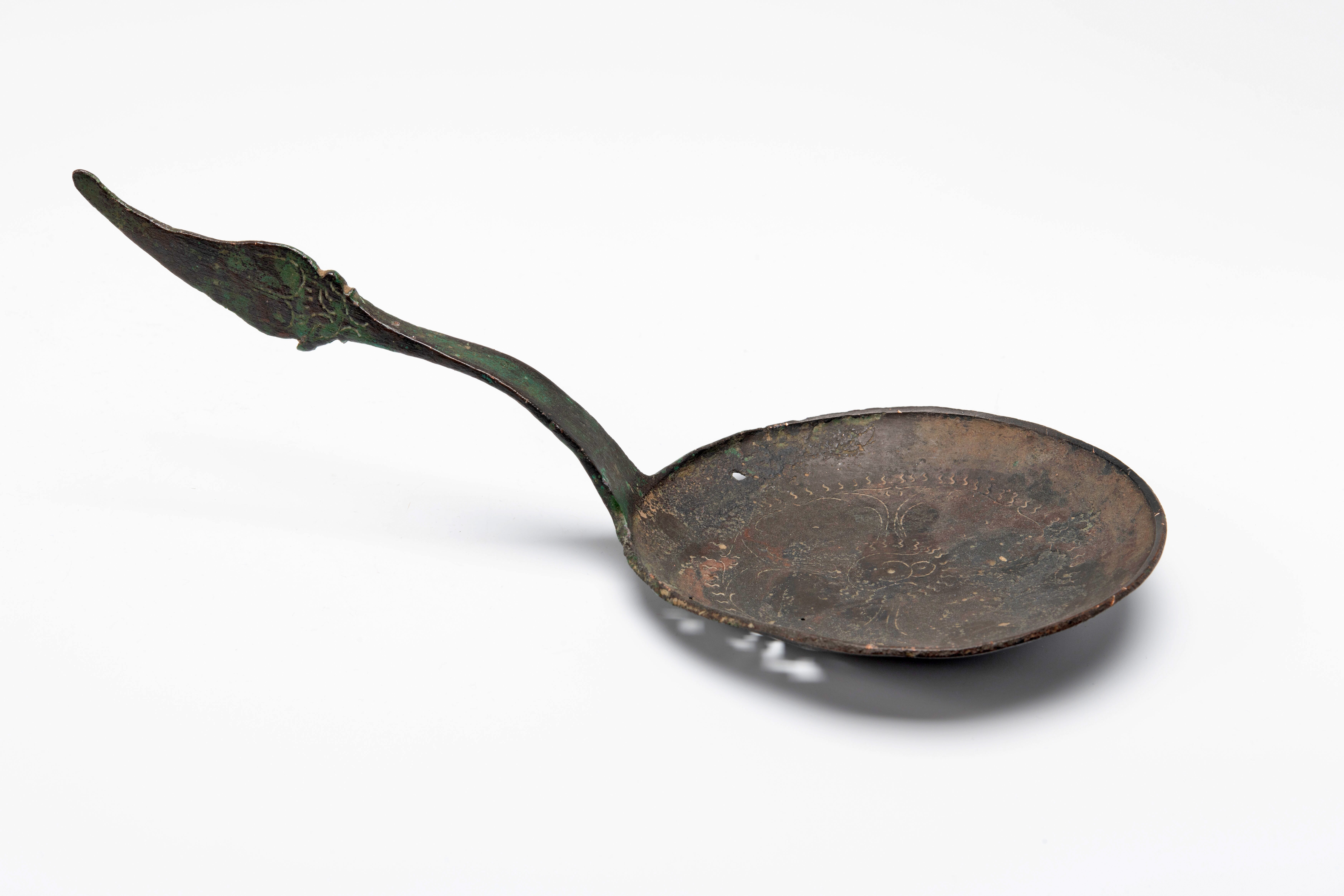 De lepelbak en de steel zijn versierd met graveerwerk.