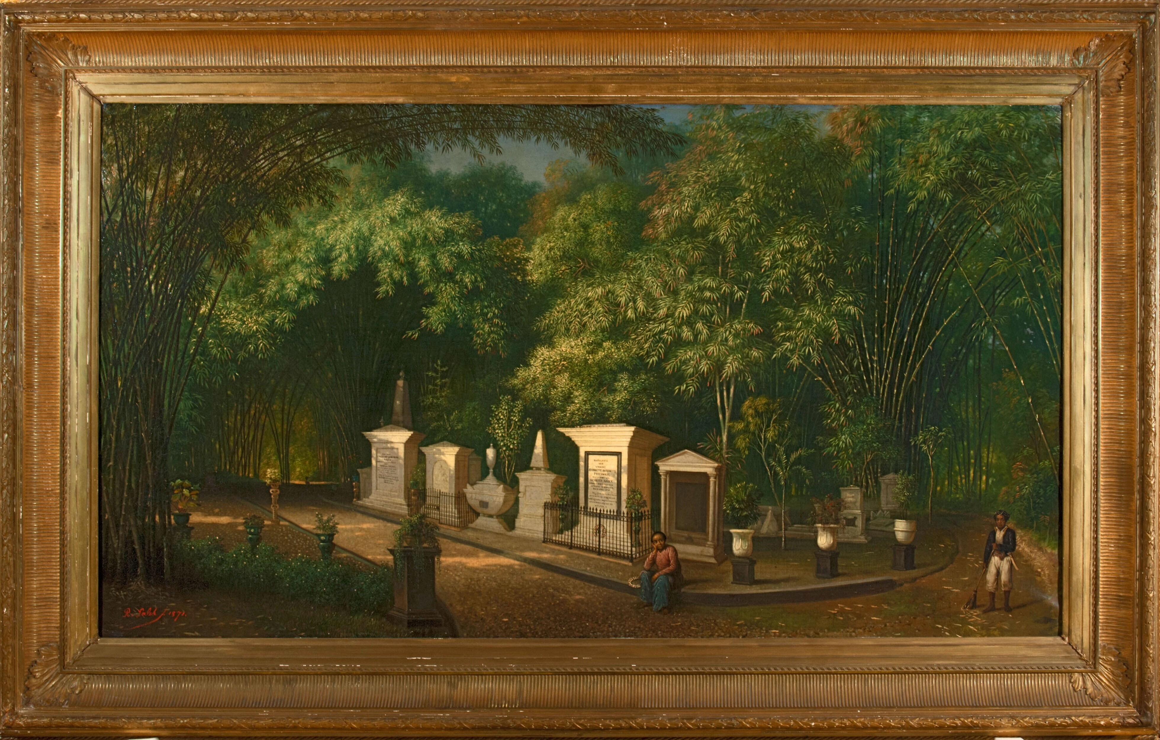 Het kerkhof in het park te Bogor met graven