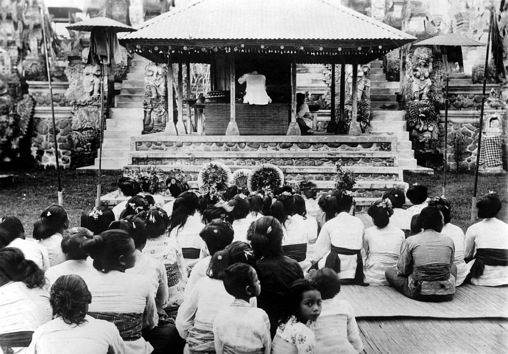 Godsdienstige plechtigheid in de Pura Dalem, Bali.