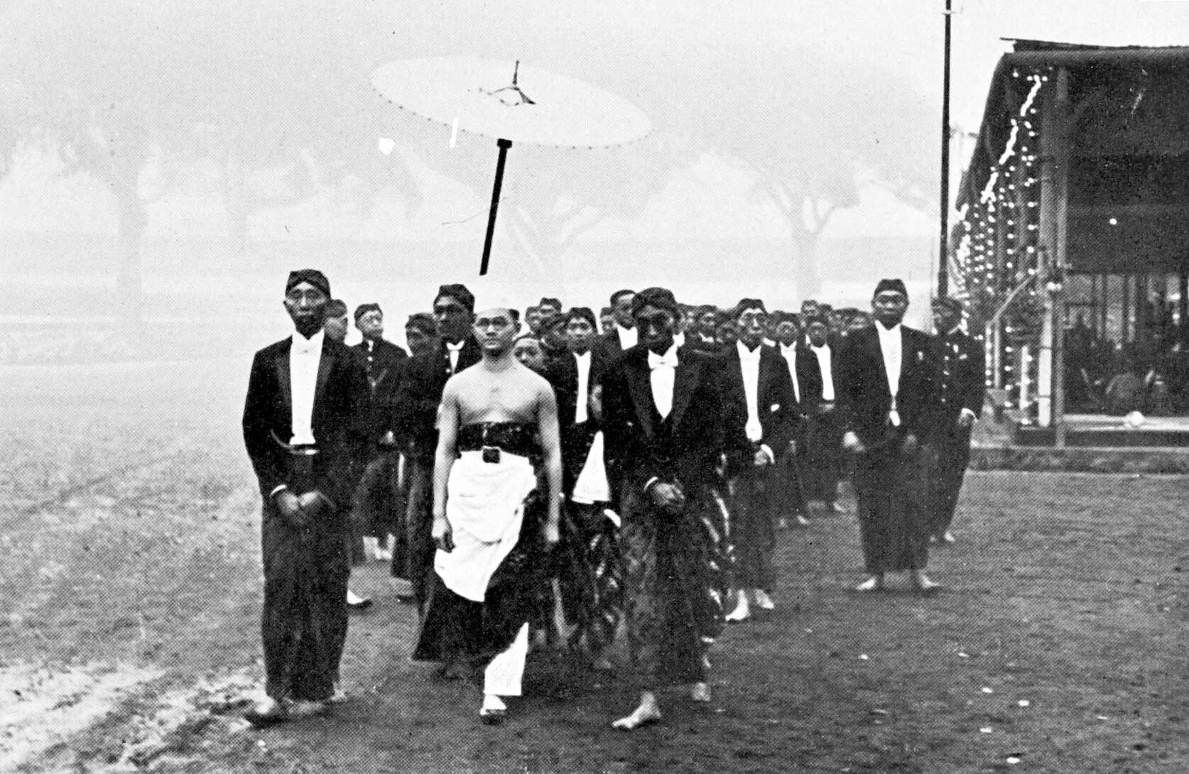 Vorstelijk huwelijk op Java. De stoet met de bruidegom onderweg.