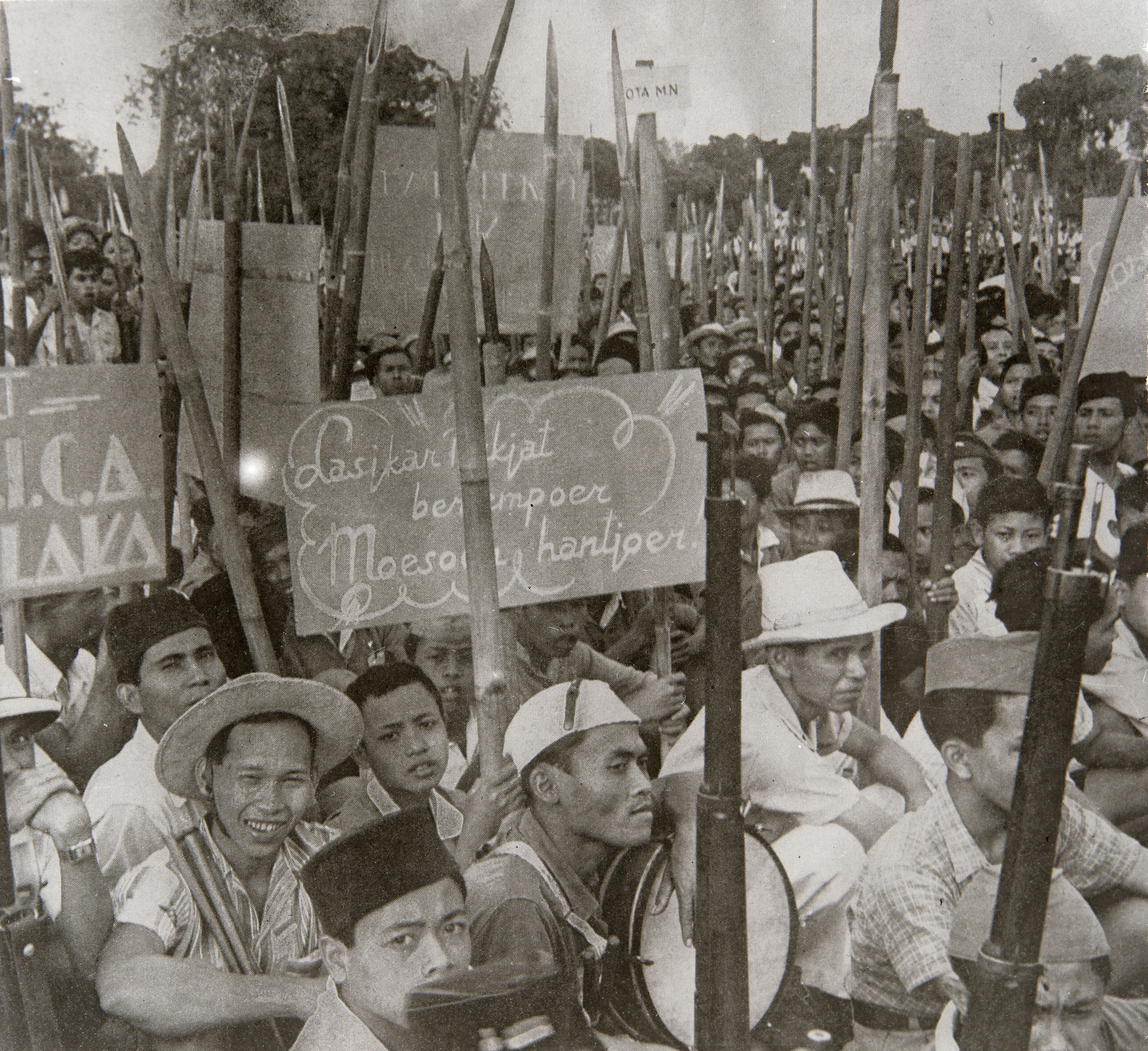 Javaanse Revolutionairen strijden voor onafhankelijkheid. Ze zijn voor het merendeel bewapend met bamboesperen; de enkele geweren zijn afkomstig van Japanners