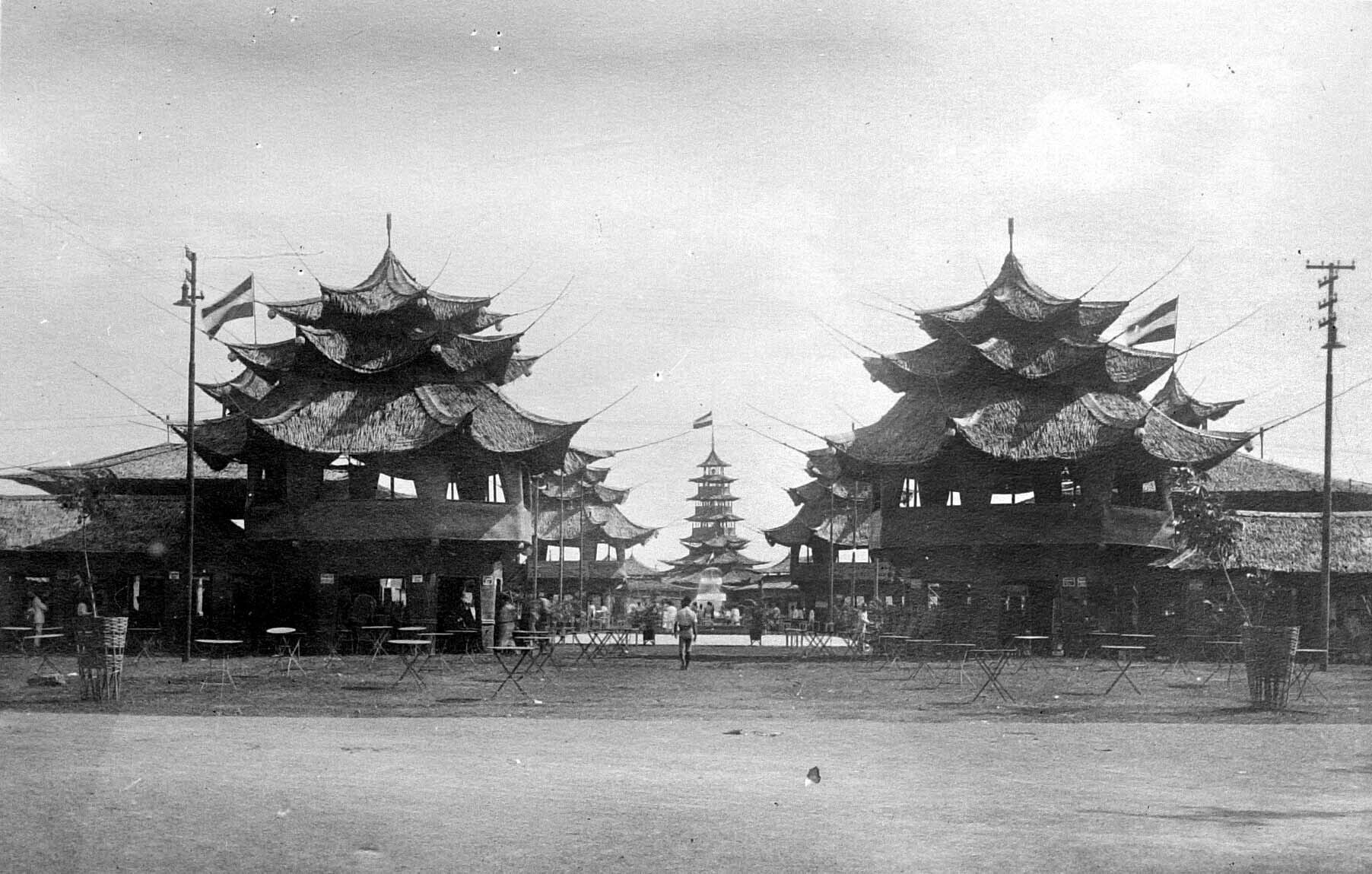 Gebouwen van de jaarmarkt 'Pasar Gambir' van 1925 te Jakarta, Java