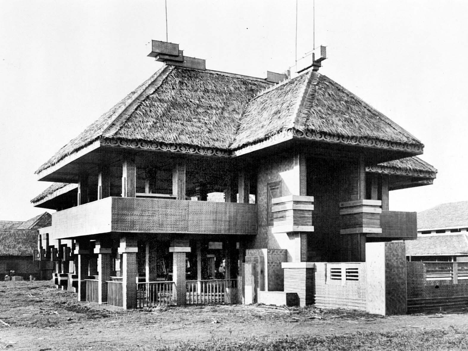 Een expositiegebouw van de jaarmarkt 'Pasar Gambir' van 1932 te Jakarta, Java