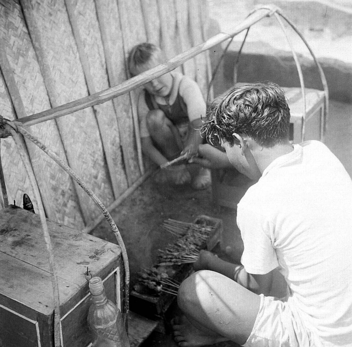 Saté ajam-verkoper te Saradan, Madiun, Oost-Java