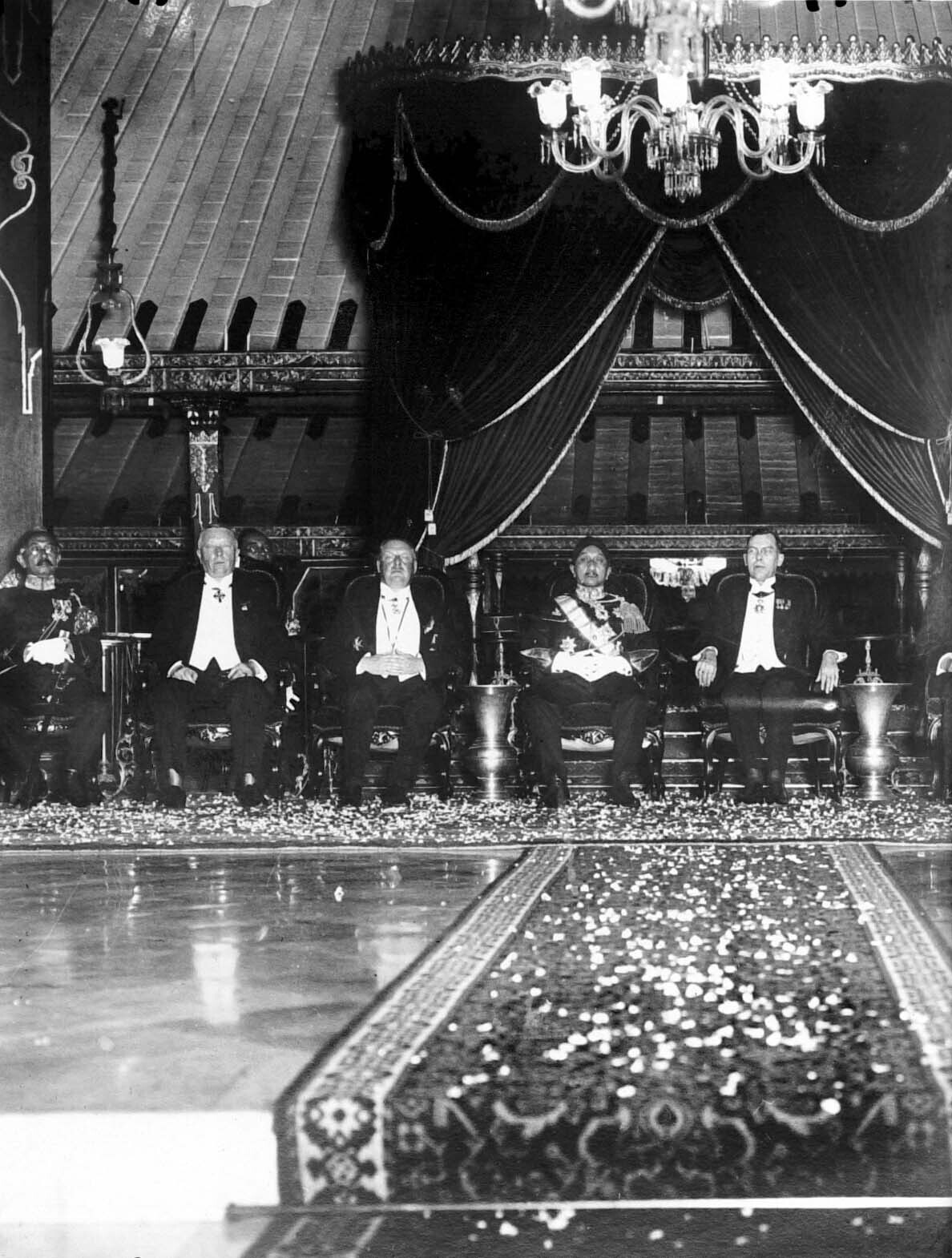 Bezoek van Jhr. W. Roëll en prof. J.C. van Eerde aan de sultan van Yogyakarta, Java