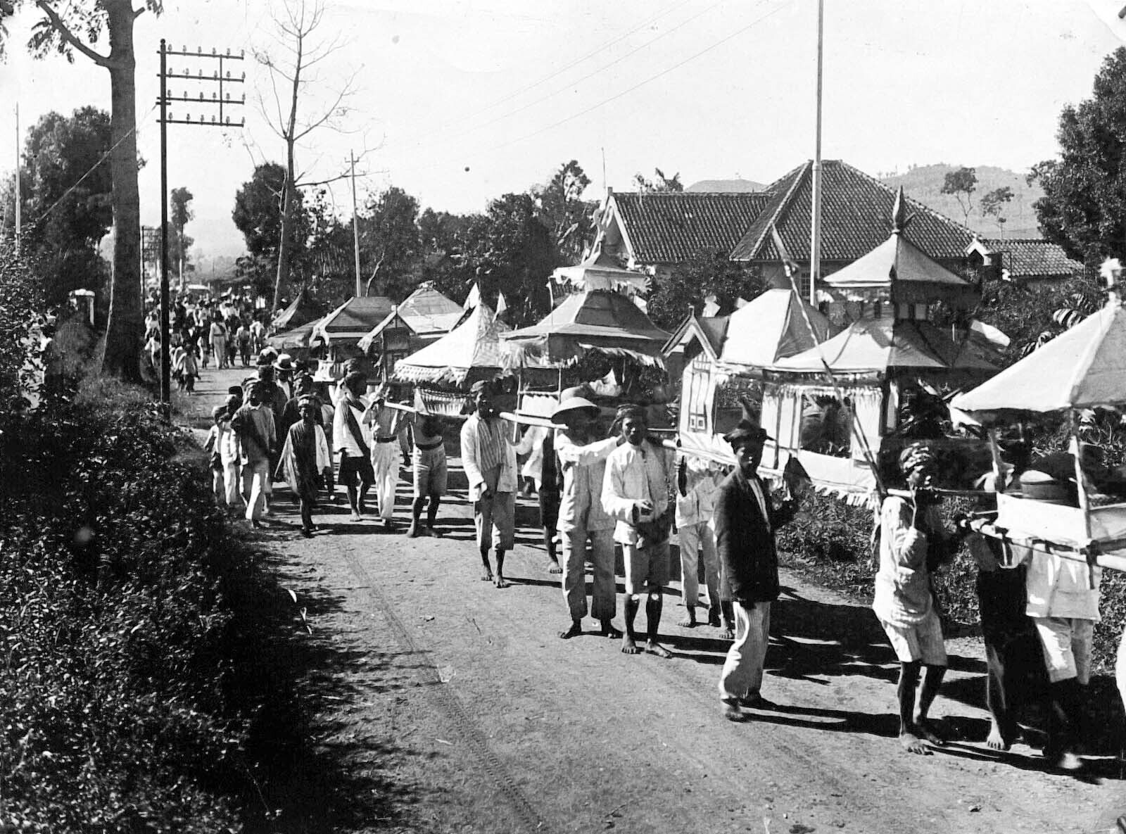 Lokale optocht voor de religieuze maaltijd 'selamatan'
