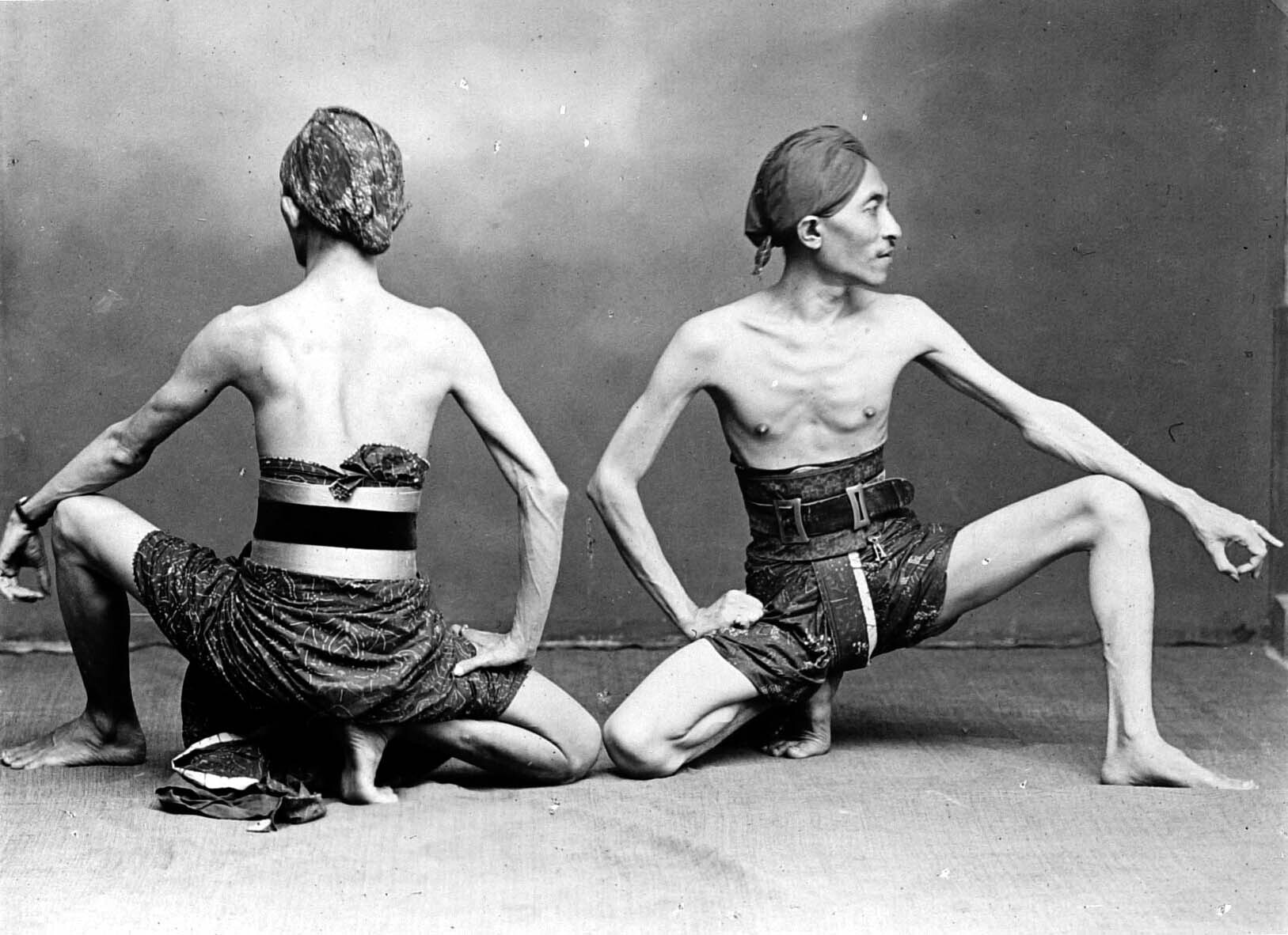 Javaanse dans: eindpositie na de tweede sembah (hurkende houding)