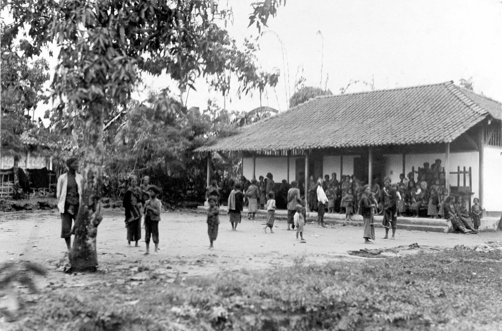 Vluchtelingen worden ondergebracht in een loods na de uitbarsting van de Merapi