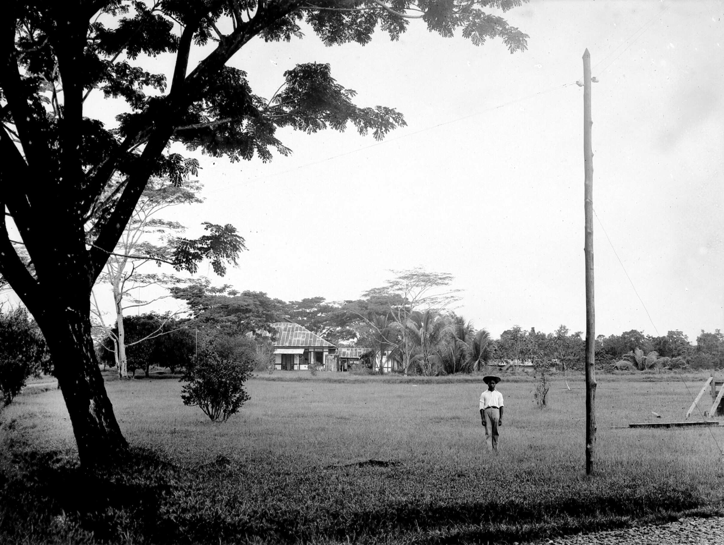 De alun-alun van Tanahmerah met op de achtergrond de commandants-woning