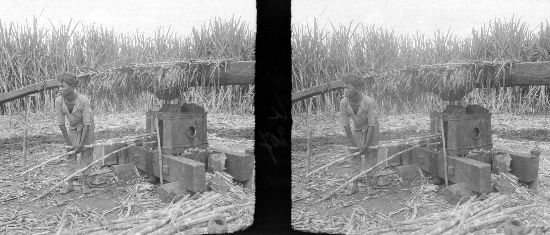 Inlandse rietmolen in het twede snitsveld; uitlaat van het sap, Malang