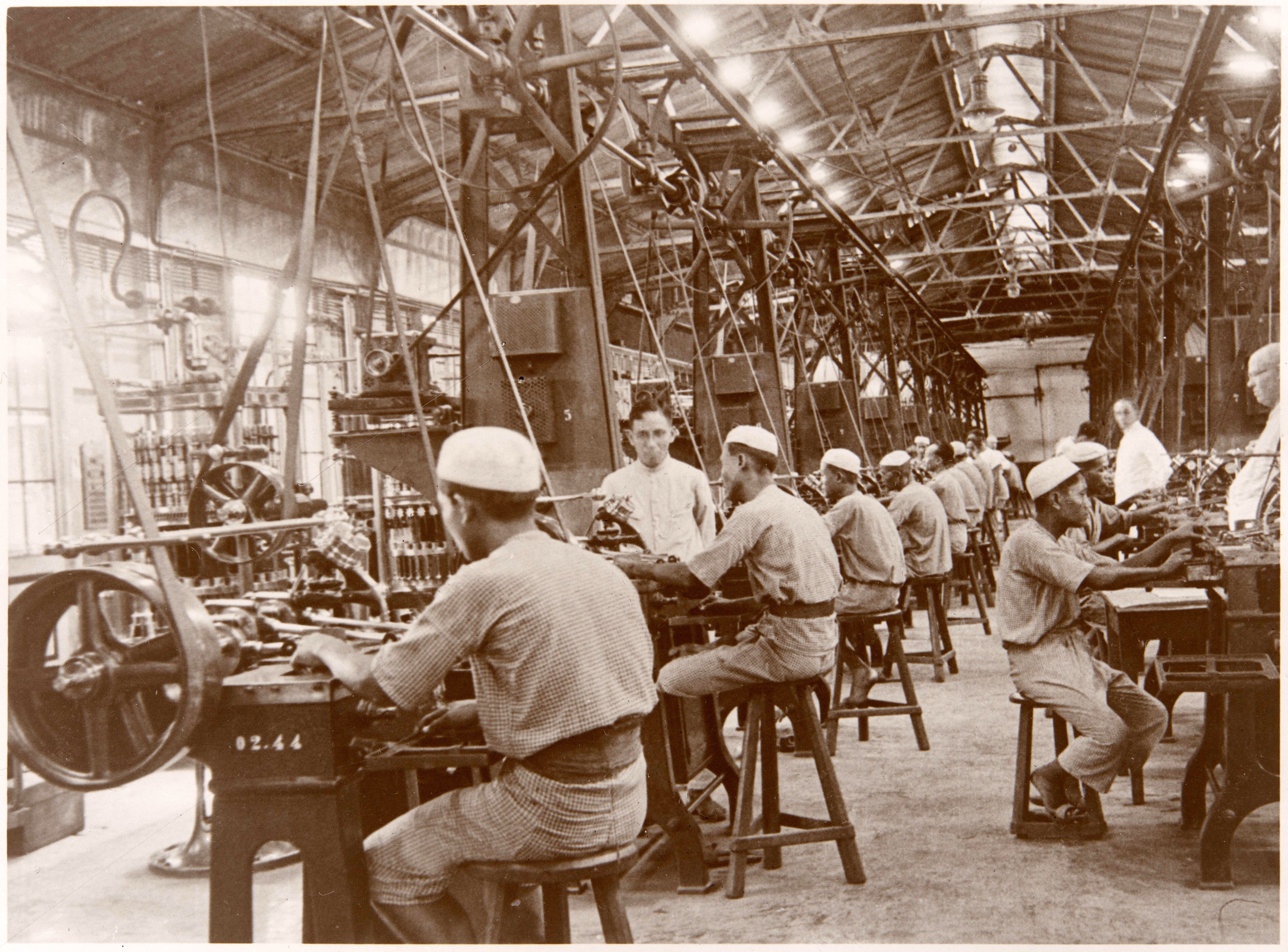 In de vulkamer van een opiumfabriek te Batavia worden de hulzen in houten doosje verpakt, Java