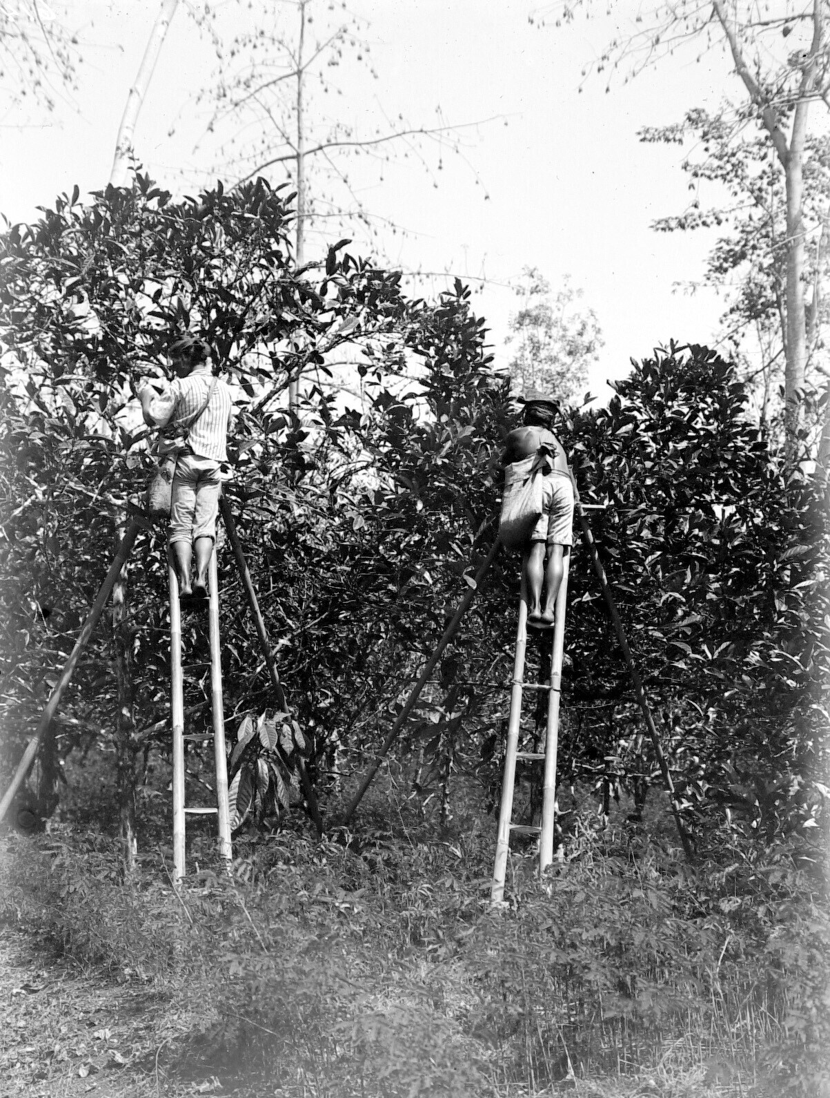 De pluk van Liberia-koffie op onderneming Silowok Sawangan, Midden-Java
