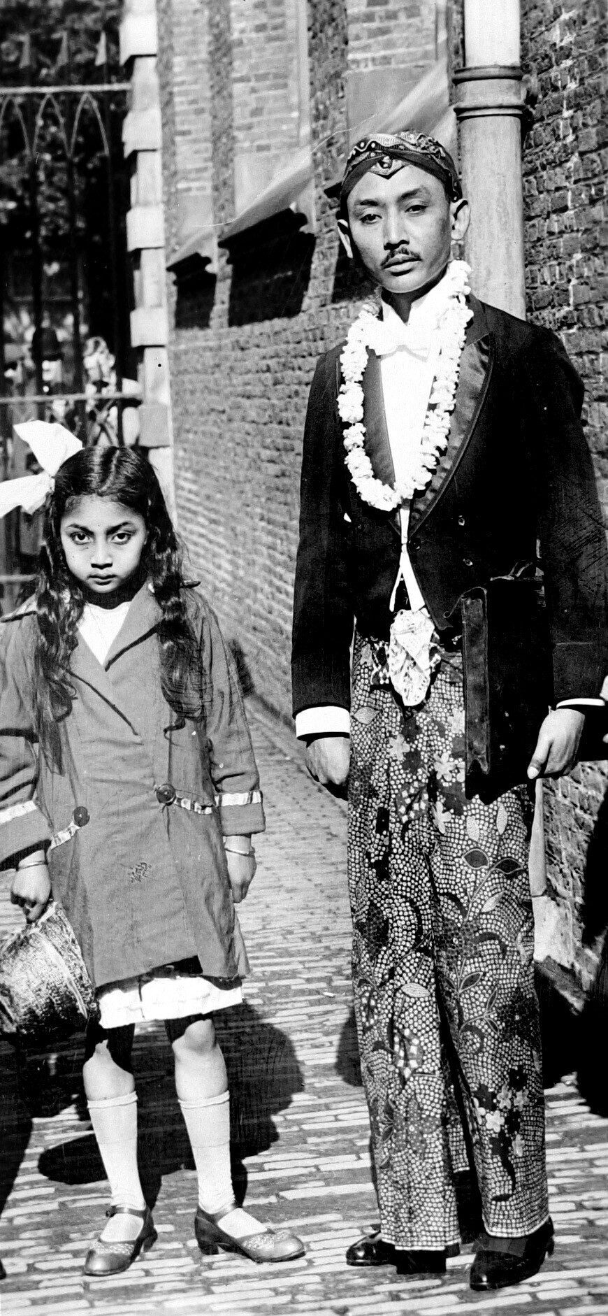 De taalkundige Dr. Poerbatjaraka verlaat het Universiteitsgebouw in Leiden na zijn promotie