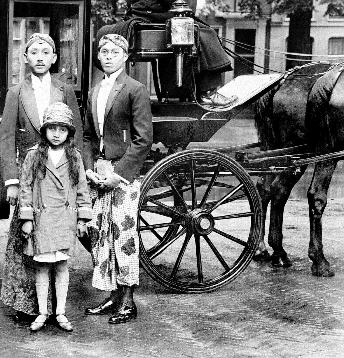 De taalkundige Dr. Poerbatjakara verlaat het Universiteitsgebouw in Leiden na zijn promotie
