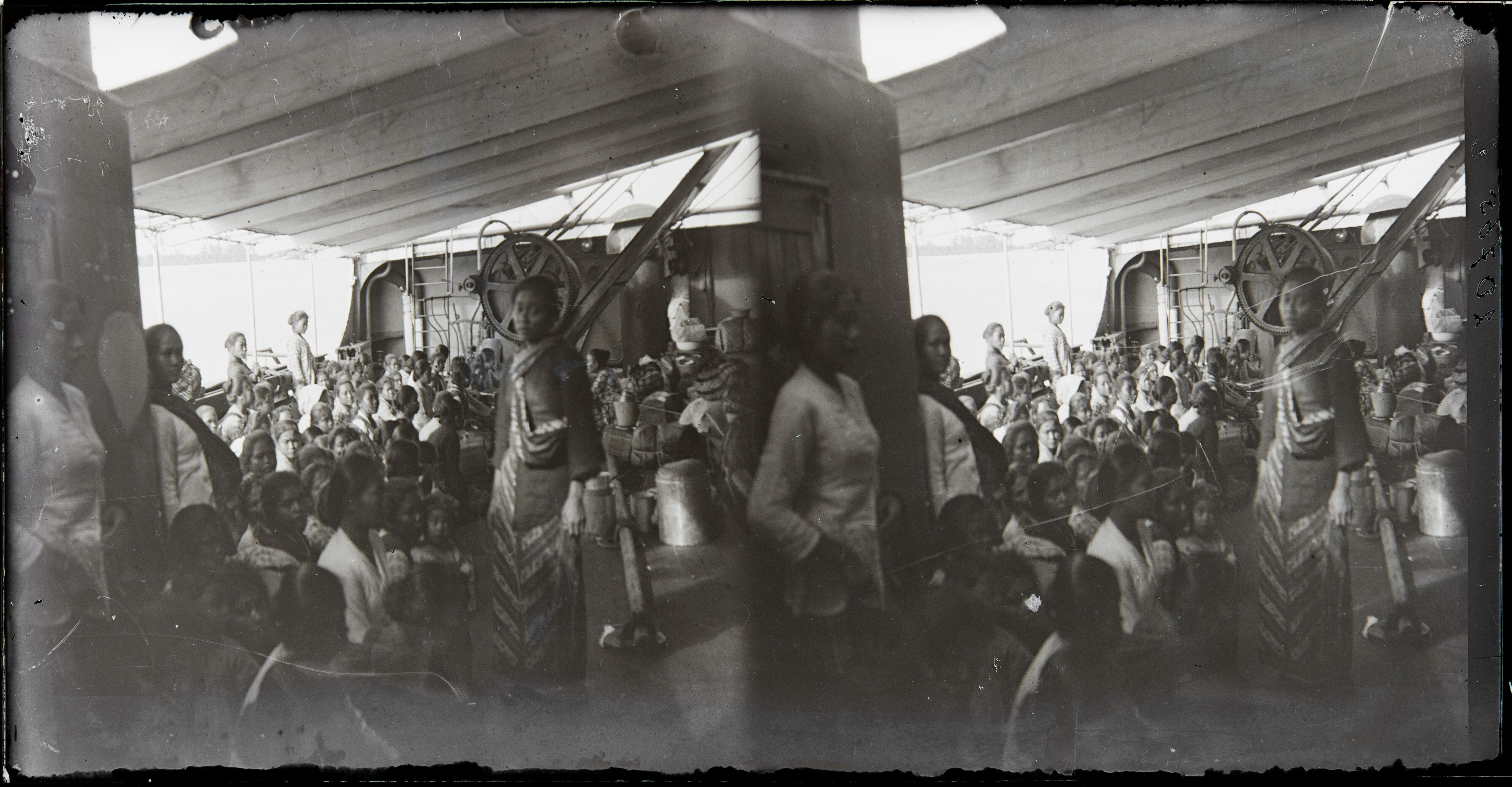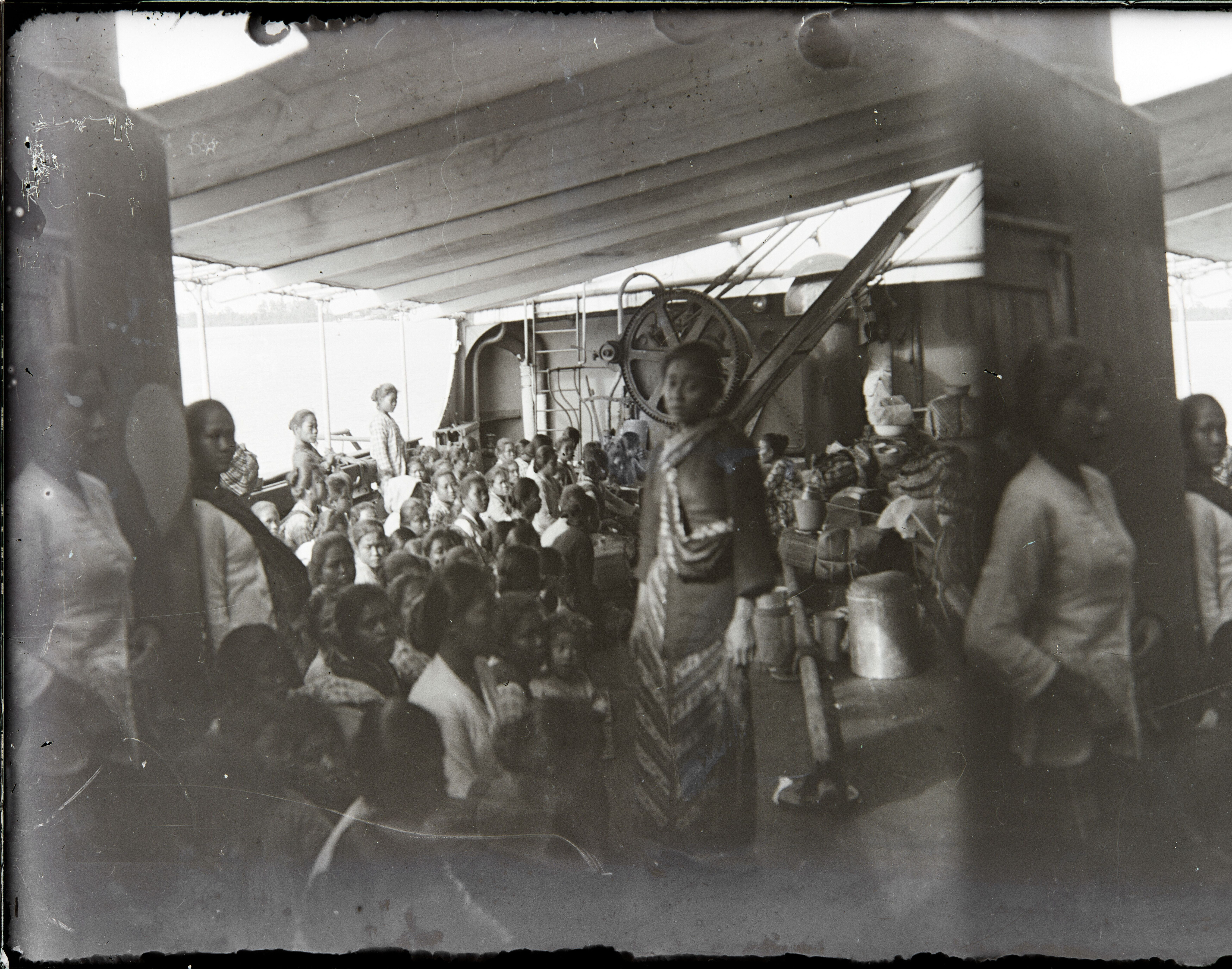 Suriname. Aankomst van het transportschip 'Simaloer' met Javaanse immigranten.