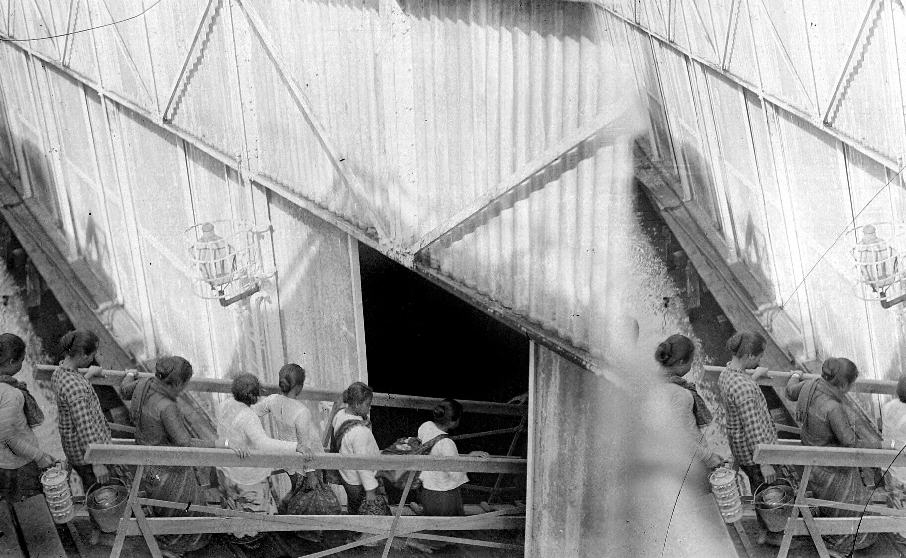 Javaanse immigranten verlaten het transportschip 'Simaloer' in Suriname