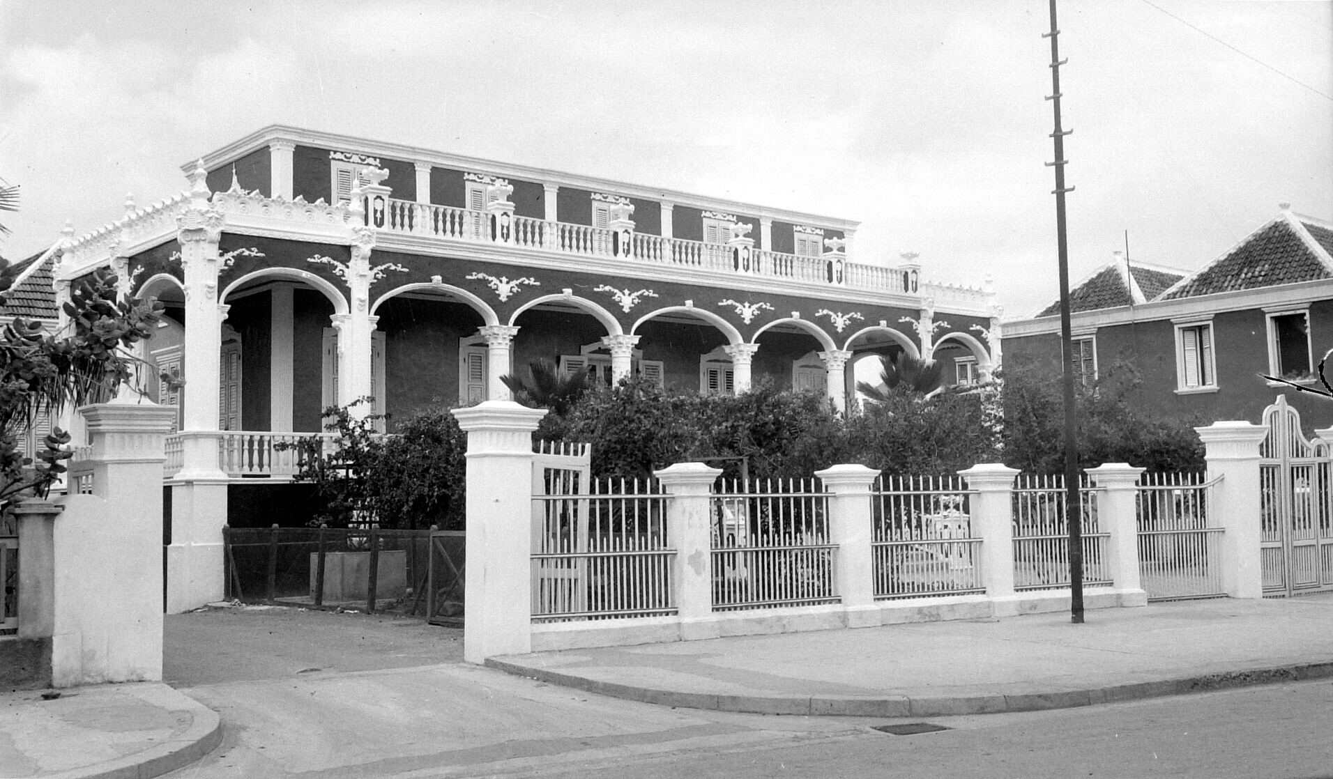 Een herenhuis bewerkt met ornamenten aan de buitenkant