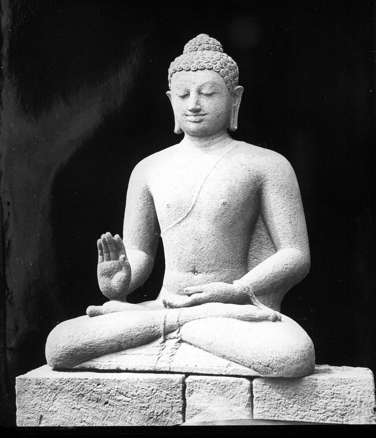 Boeddhabeeld van de Borobudur, voorstellende Dhyani Boeddha Amogasiddha