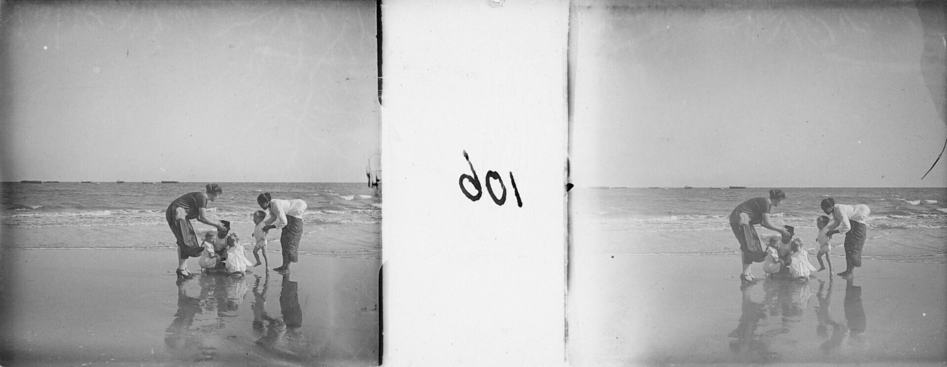 Gretchen Japing met kinderen en huispersoneel in de branding tijdens een dagje naar het strand