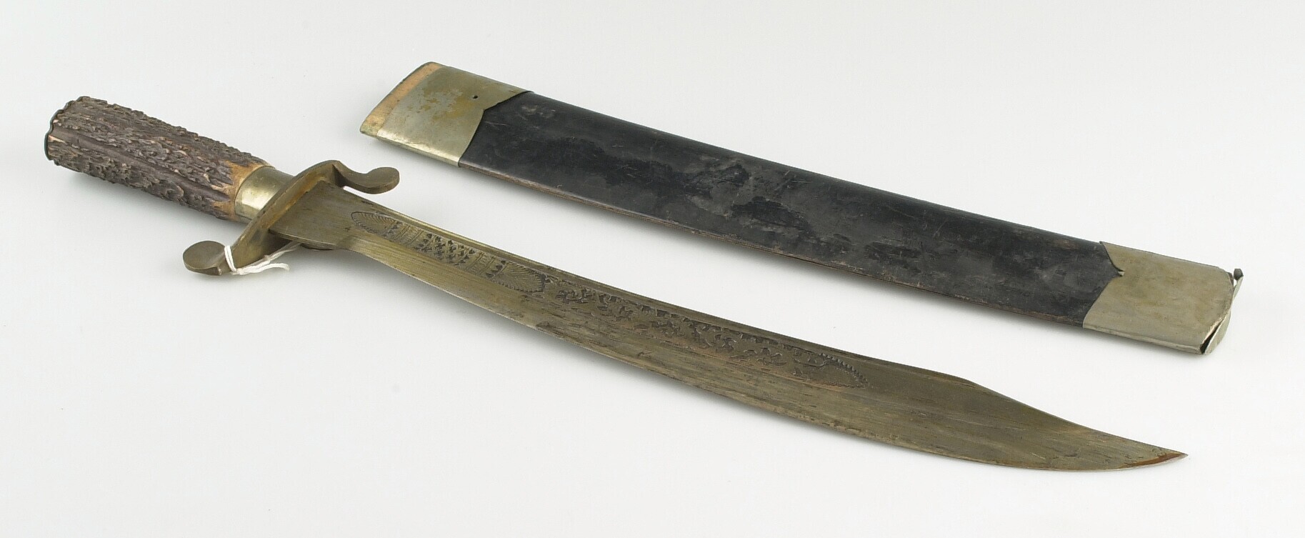 Zwaard met hoornen greep en houten schede, met versierd lemmet