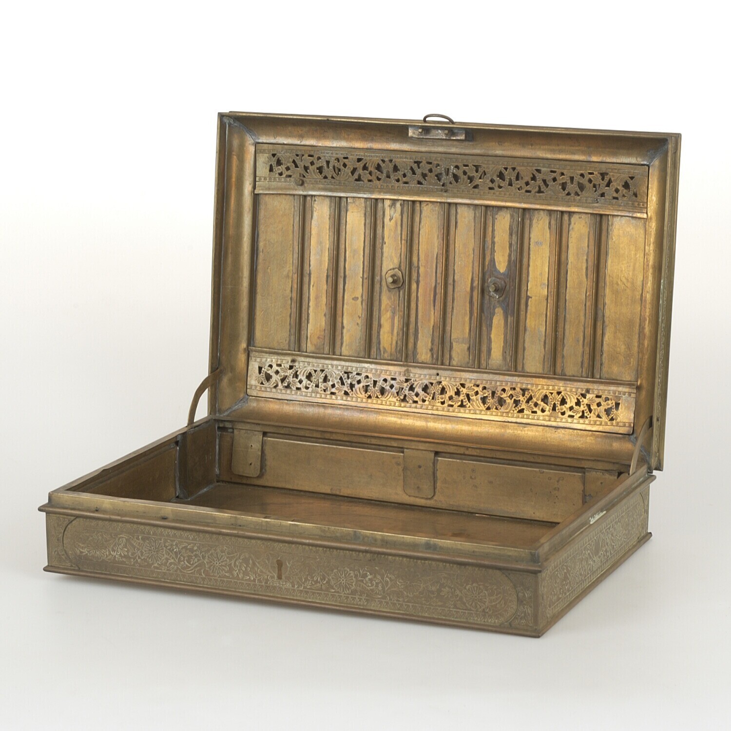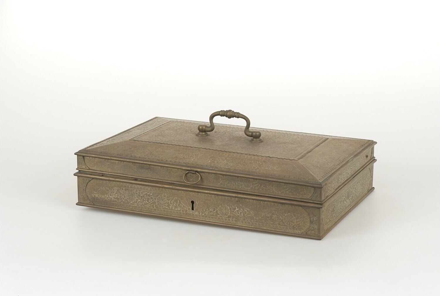 Messing sirihdoos versierd met bloem- en bladmotieven