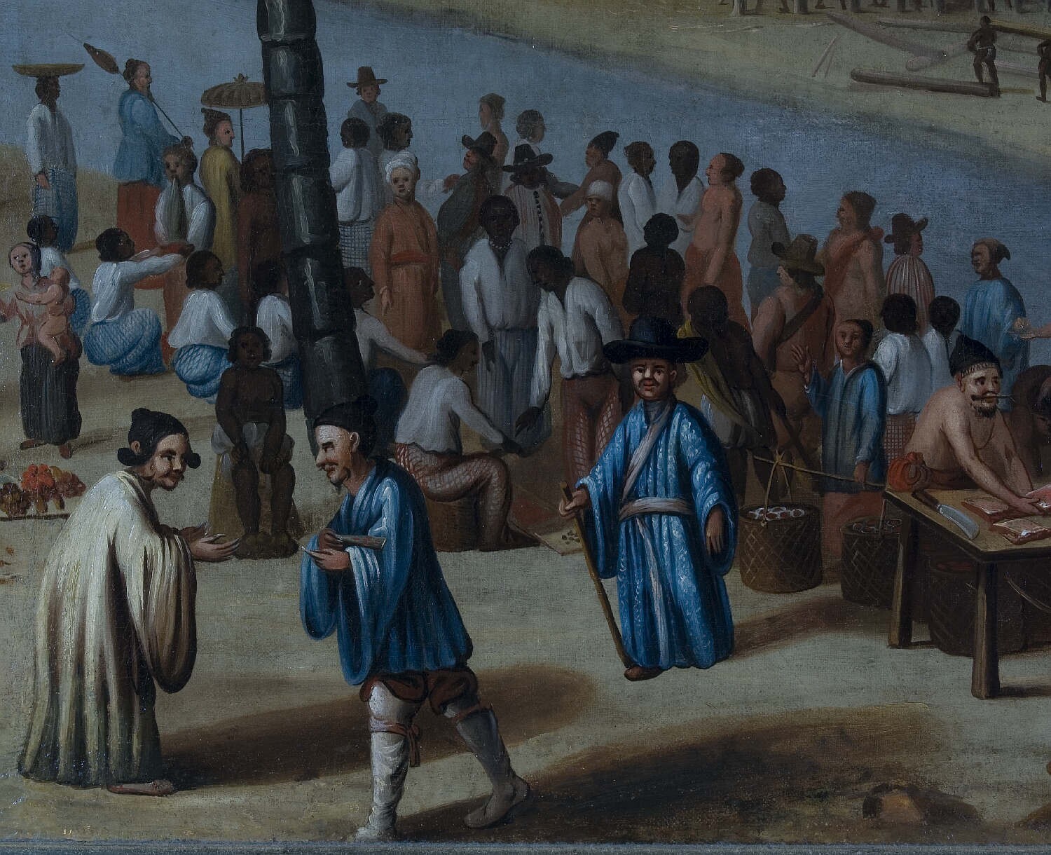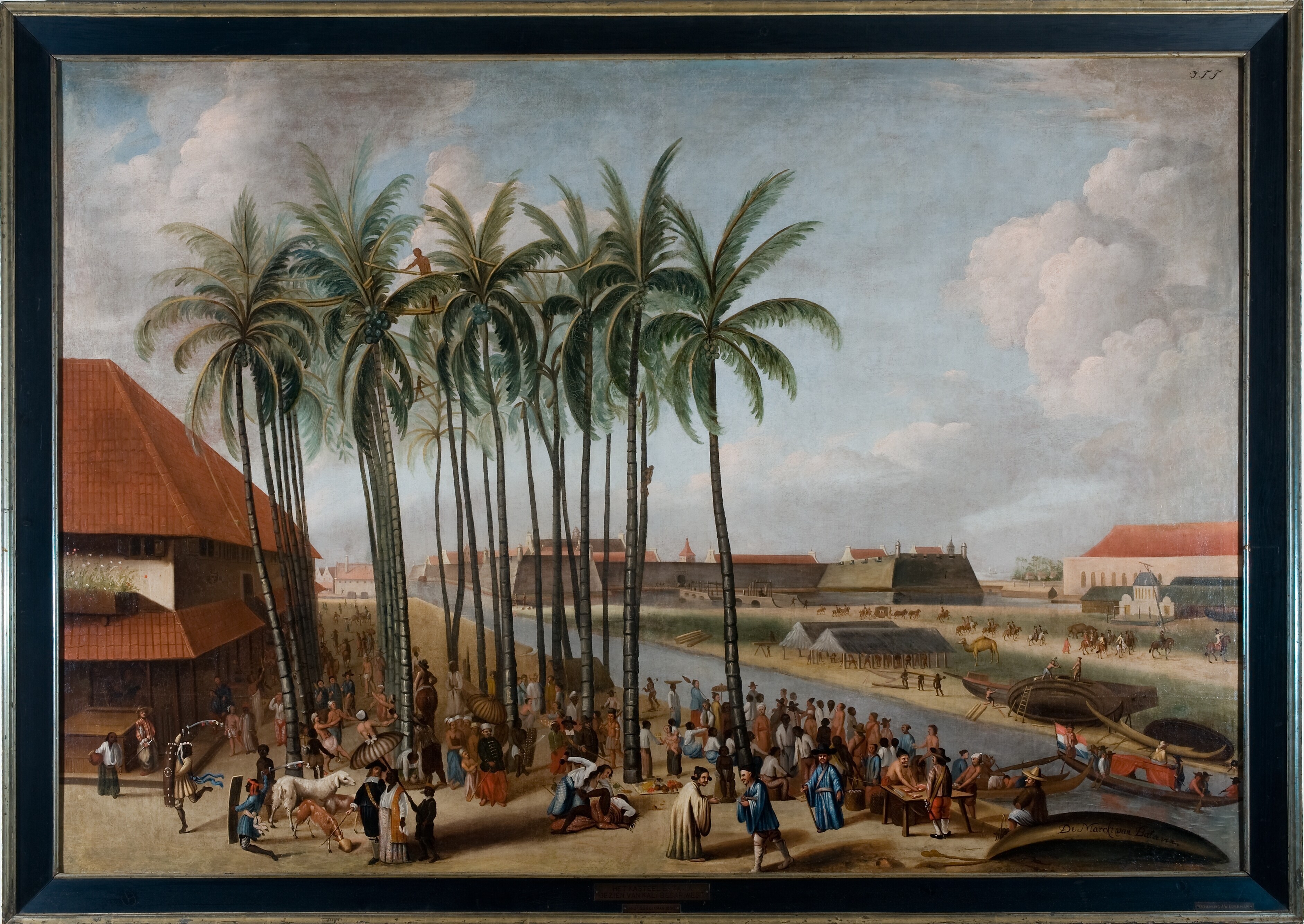 Het Kasteel Batavia gezien van Kali Besar west met op de voorgrond de vismarkt