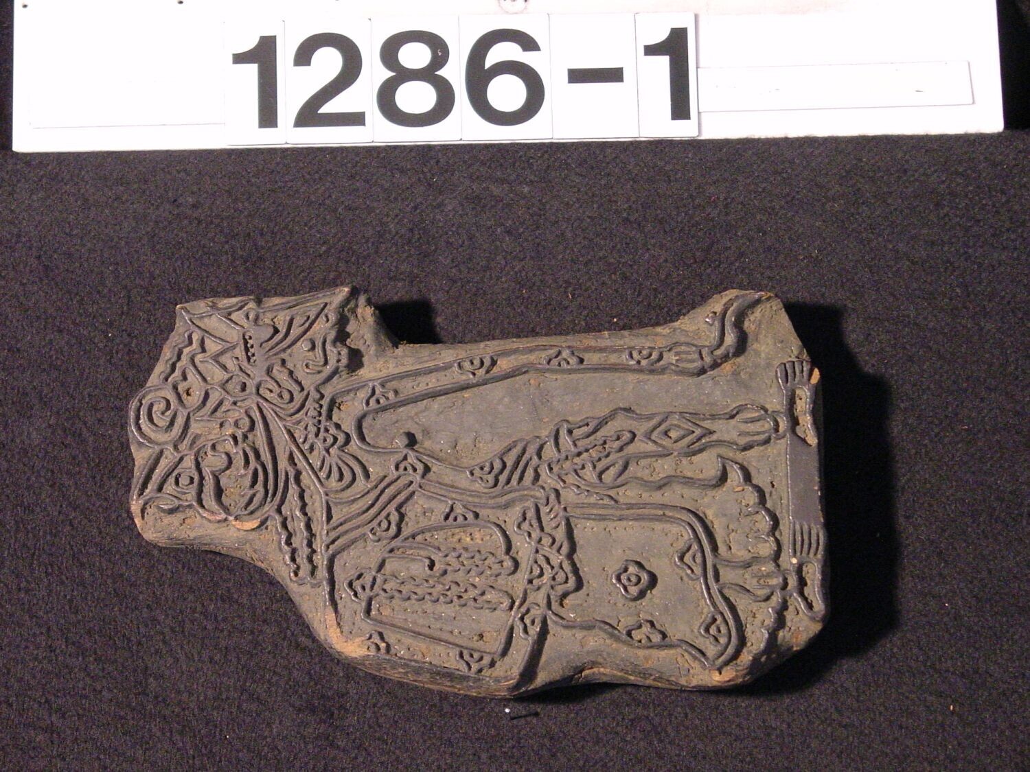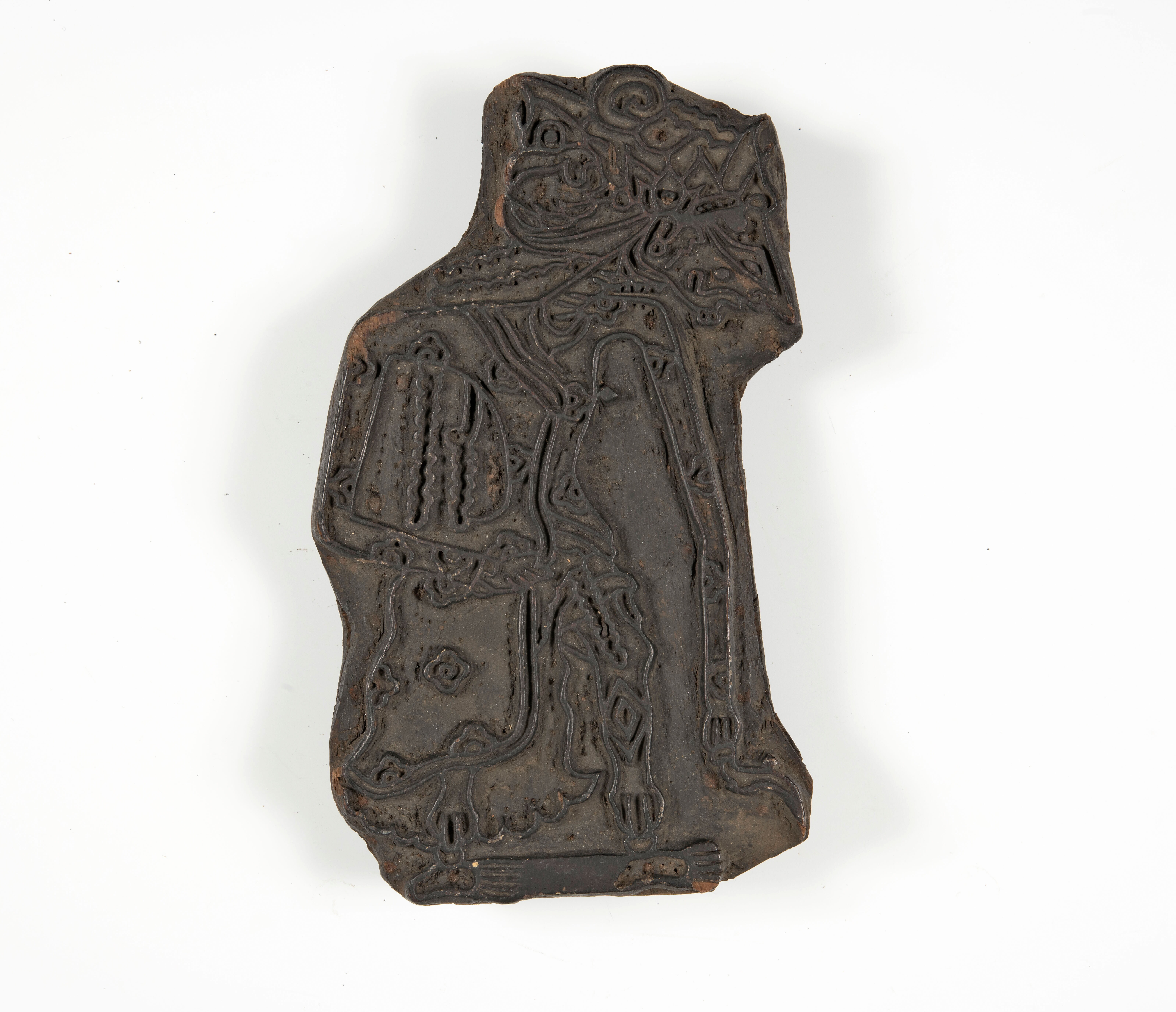 Houten cliché voor het drukken van een wajangfiguur op textiel