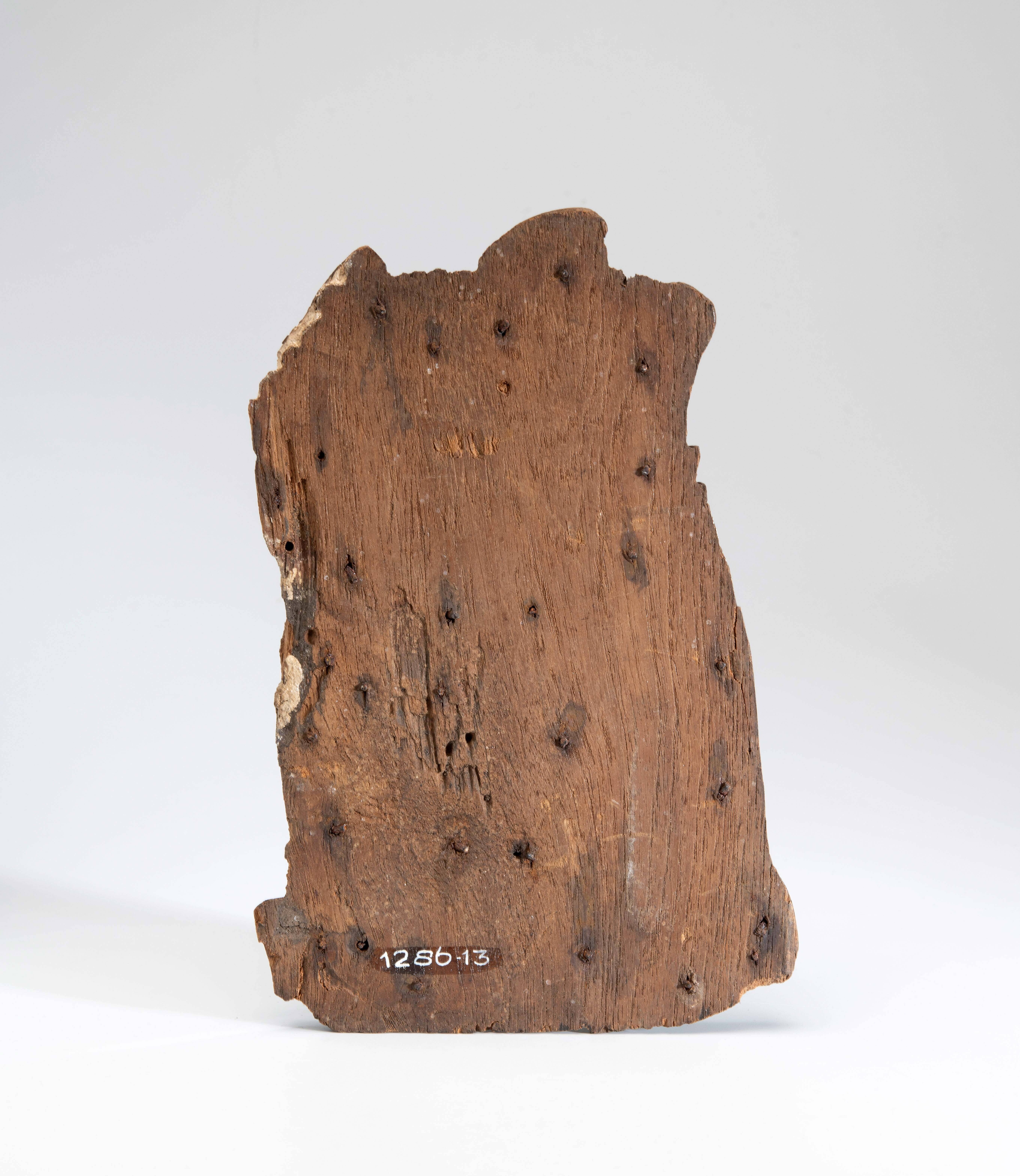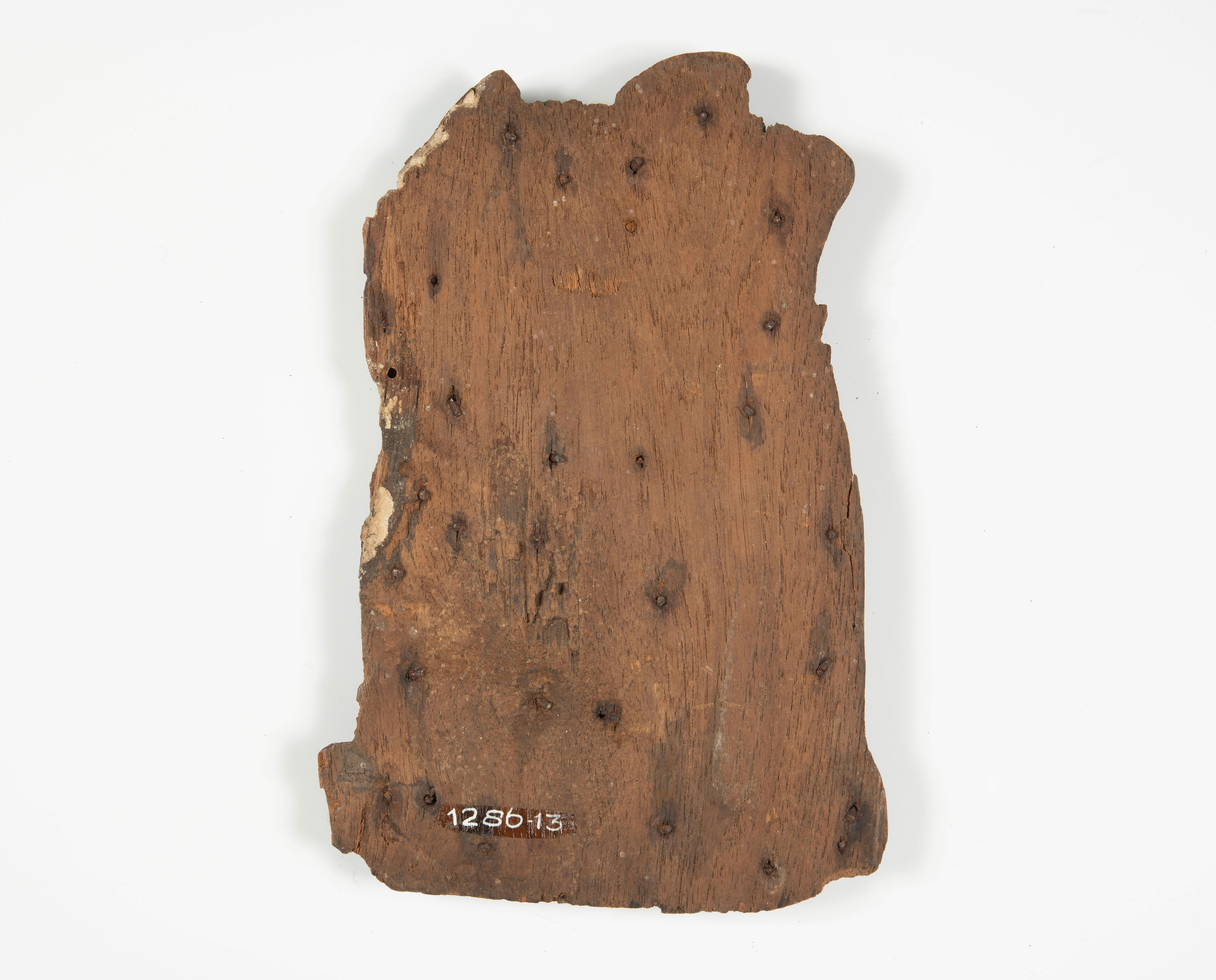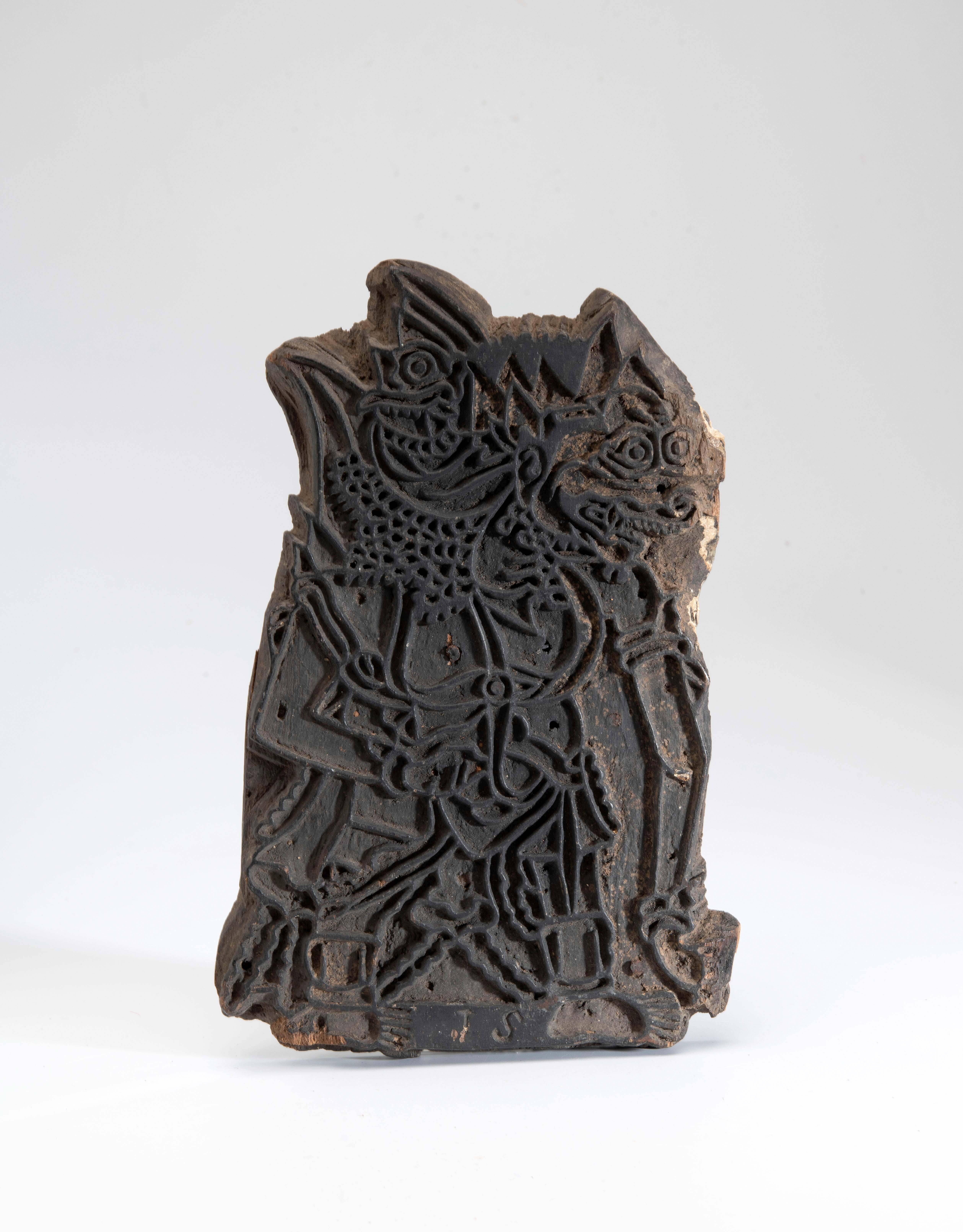 Houten cliché voor het drukken van een wajangfiguur op textiel