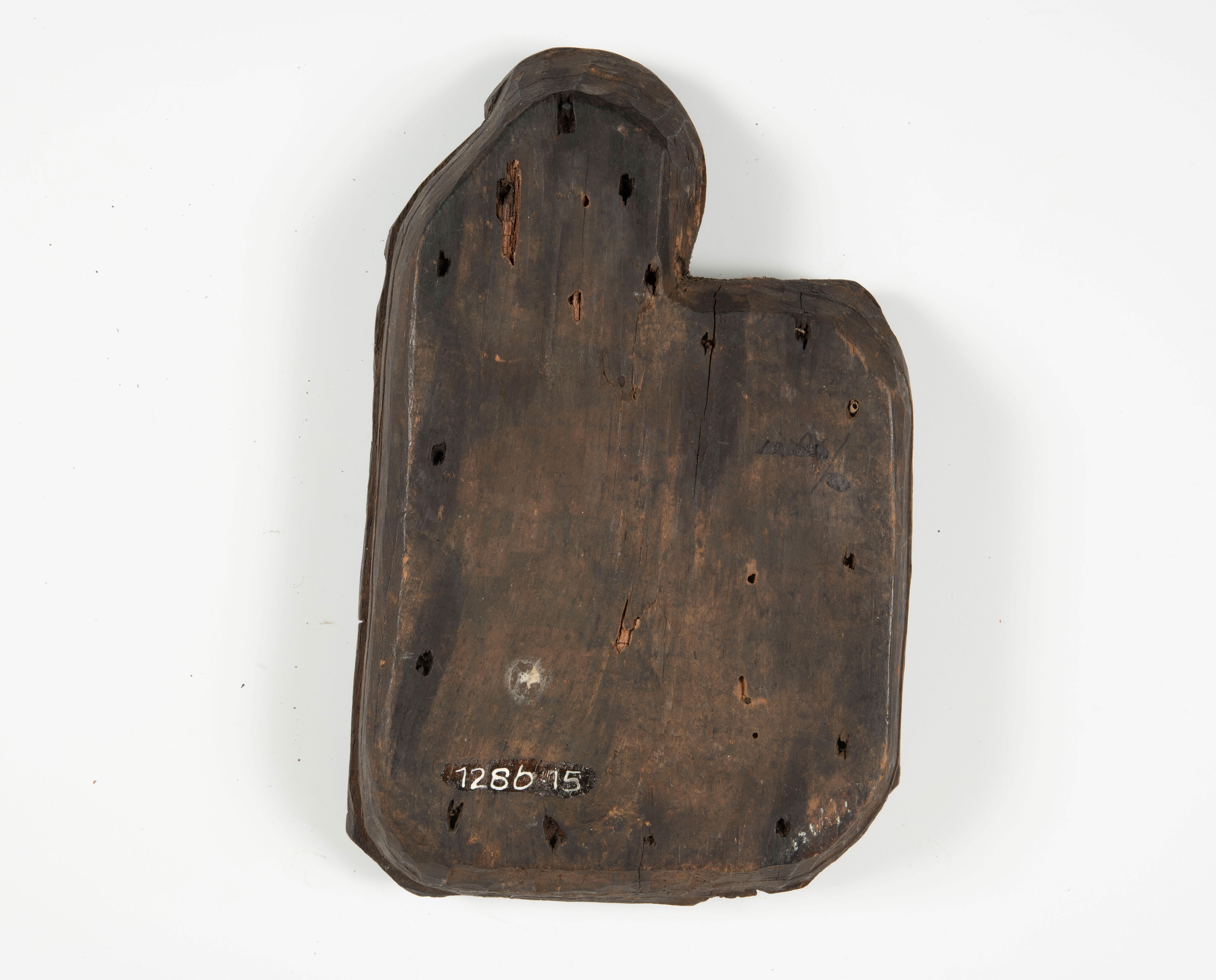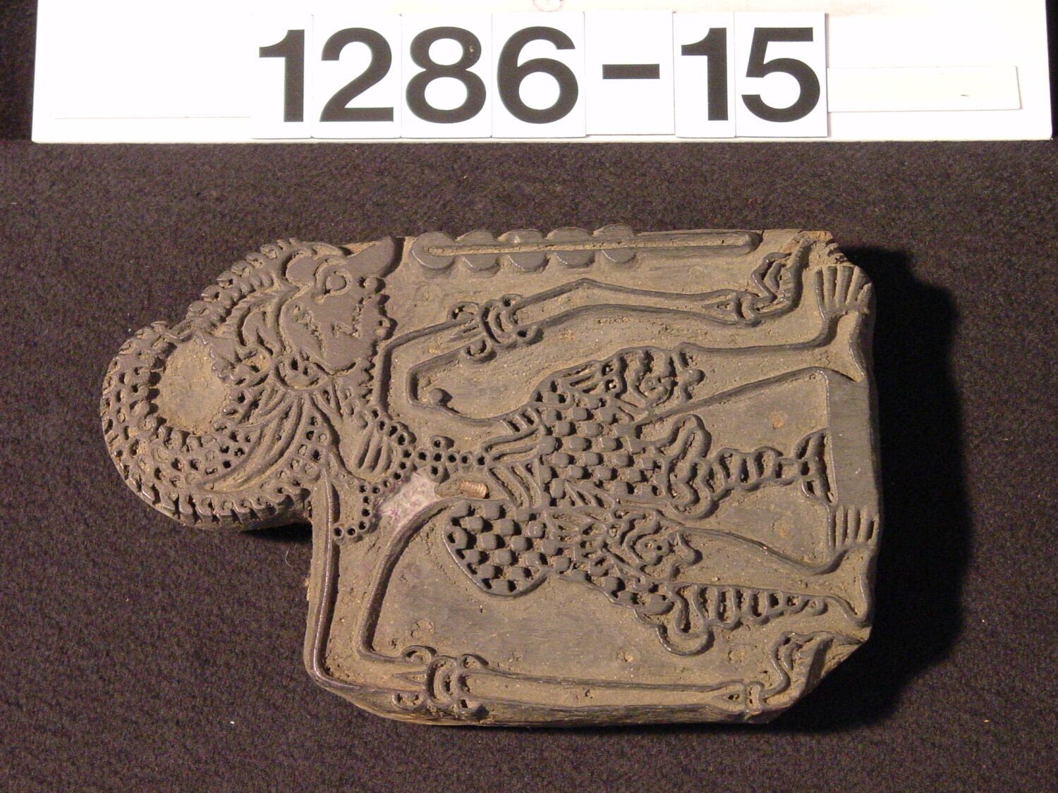 Houten cliché voor het drukken van een wajangfiguur op textiel