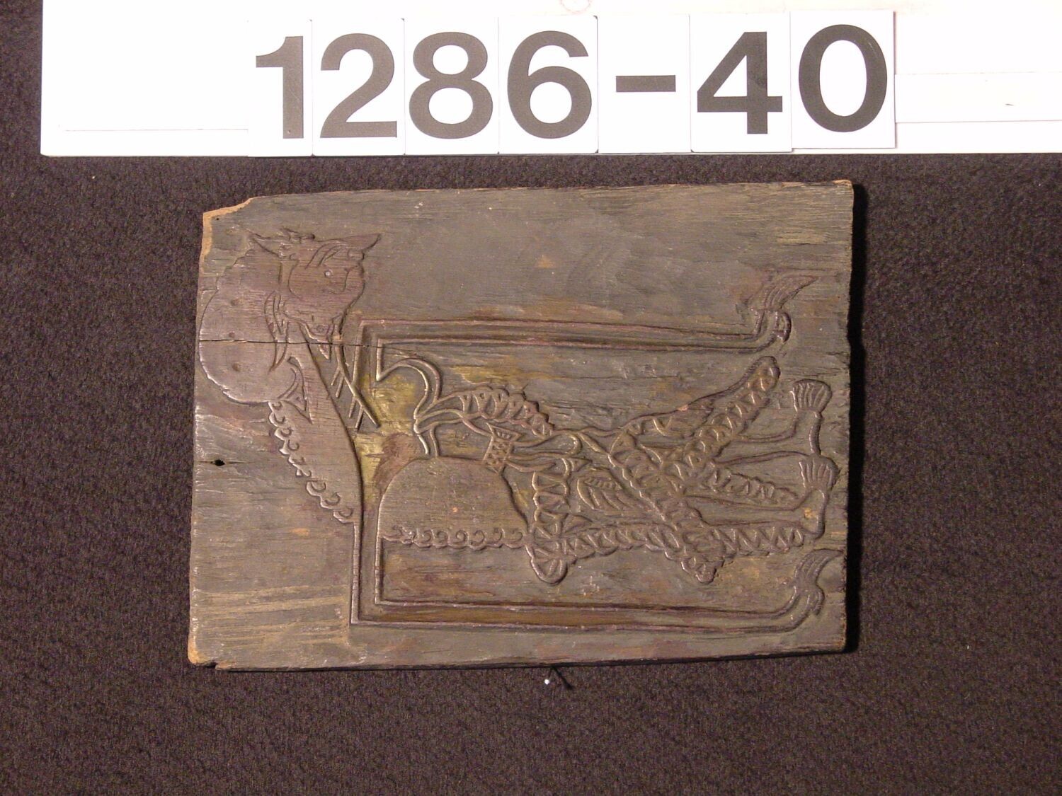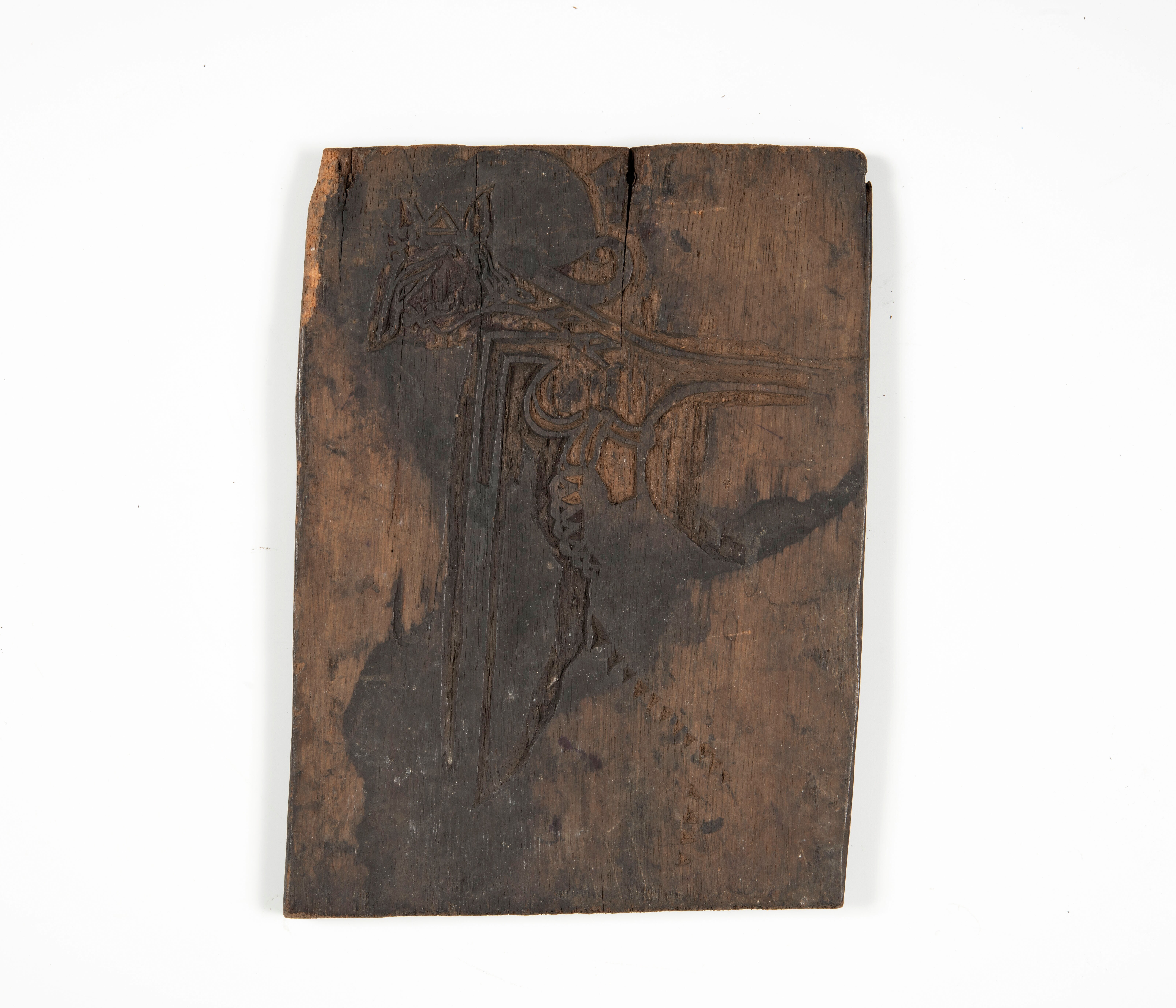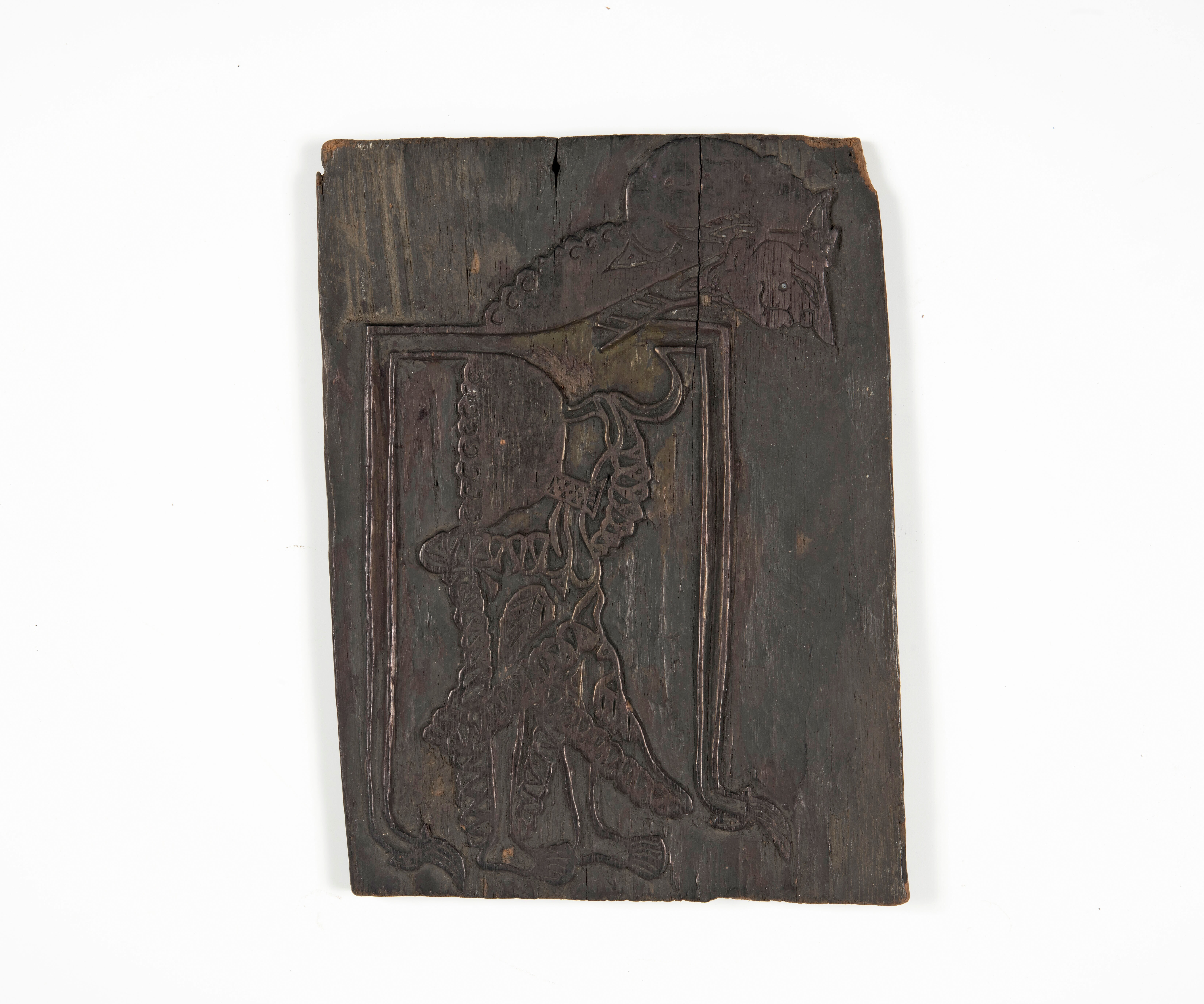 Houten cliché voor het drukken van een wajangfiguur op textiel