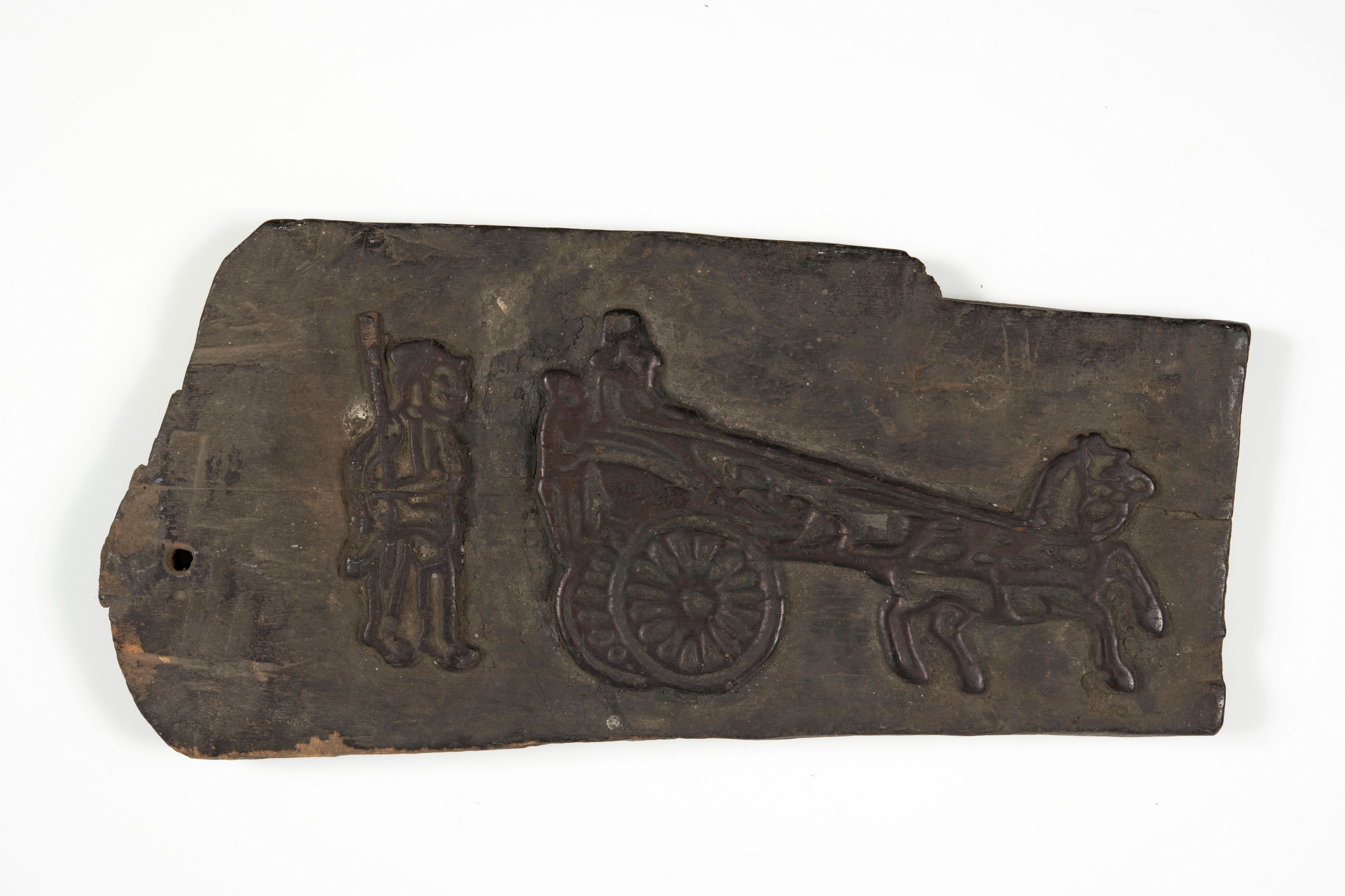Houten cliché voor het drukken van een wajangfiguur op textiel