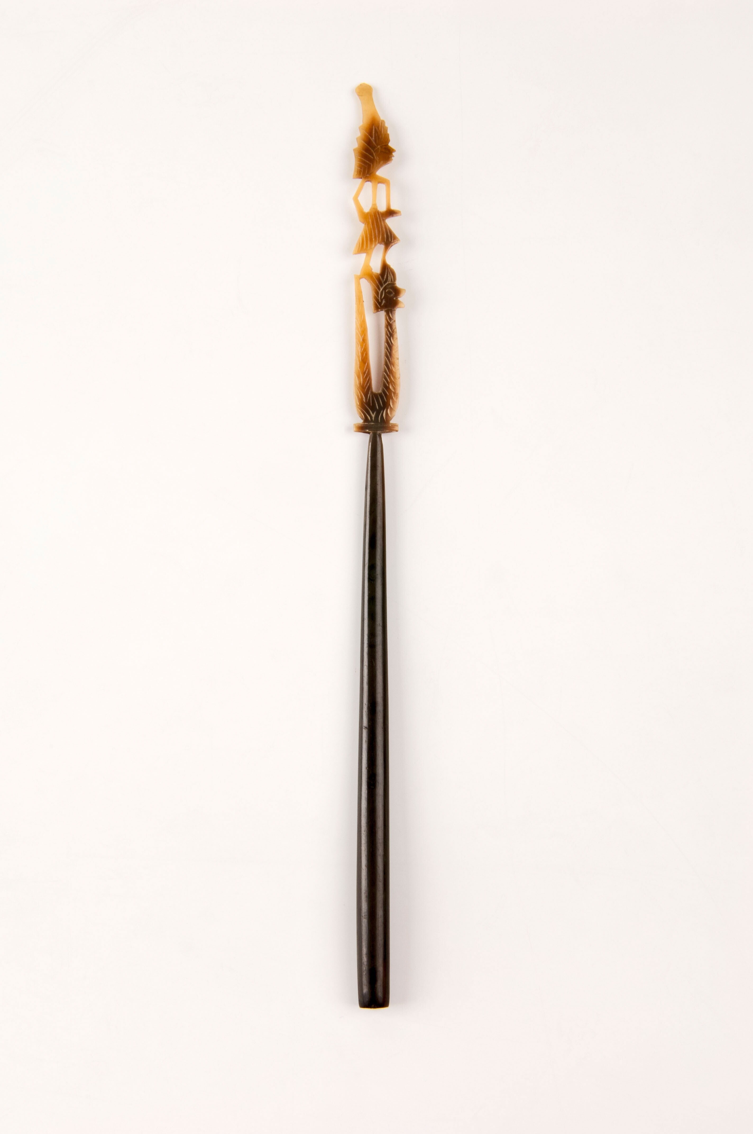 Hoornen pennenhouder met een topstuk in de vorm van een wayangpop