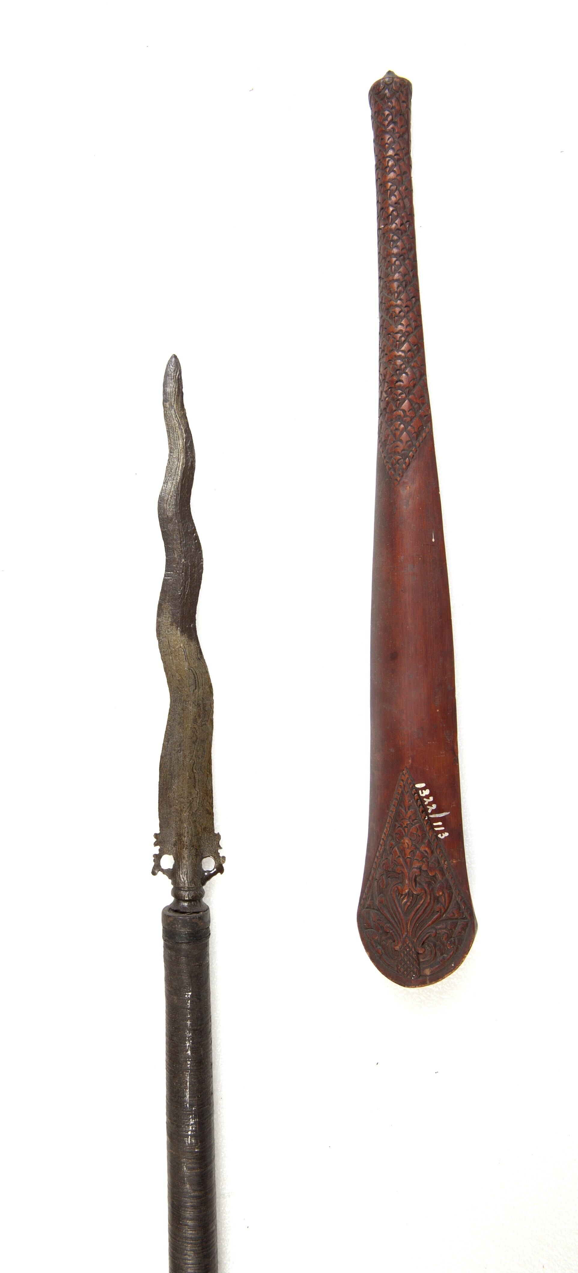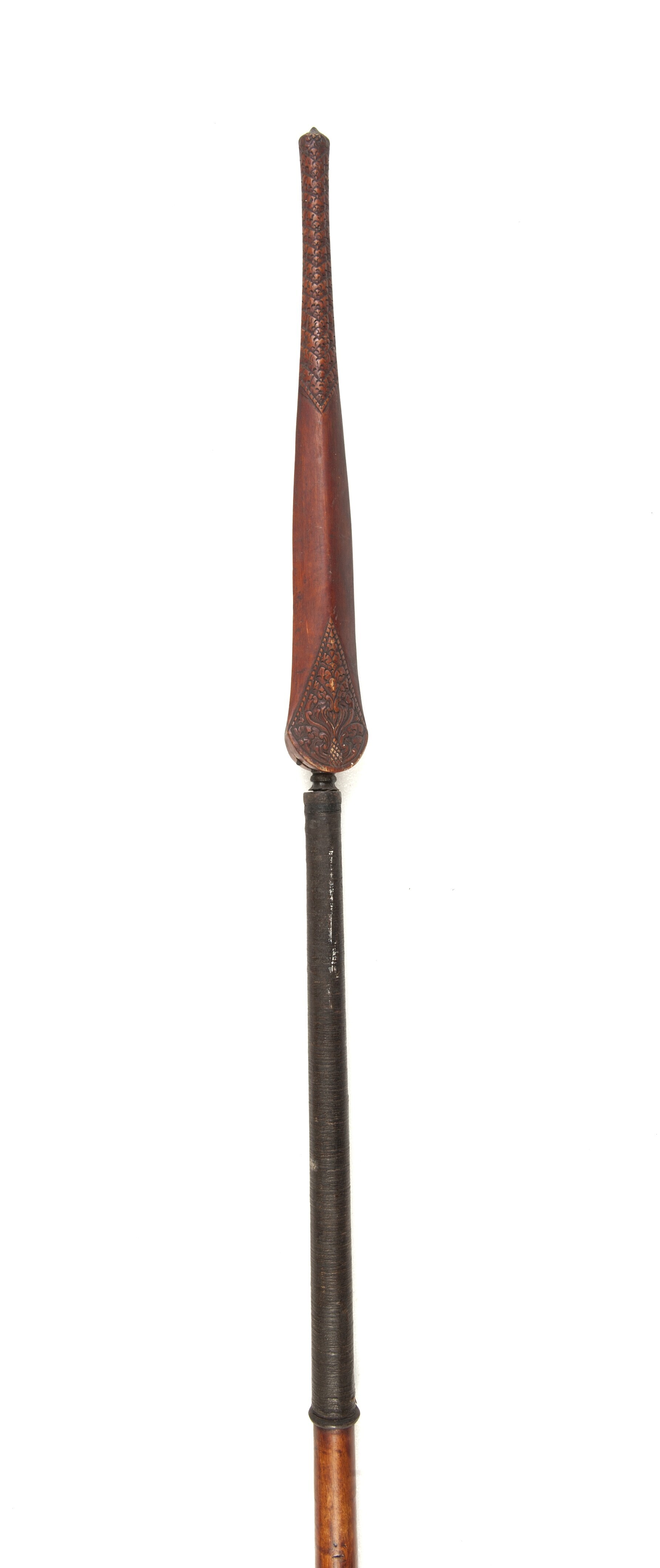 Lans met ijzeren punt en houten schacht en schede voor de lanspunt