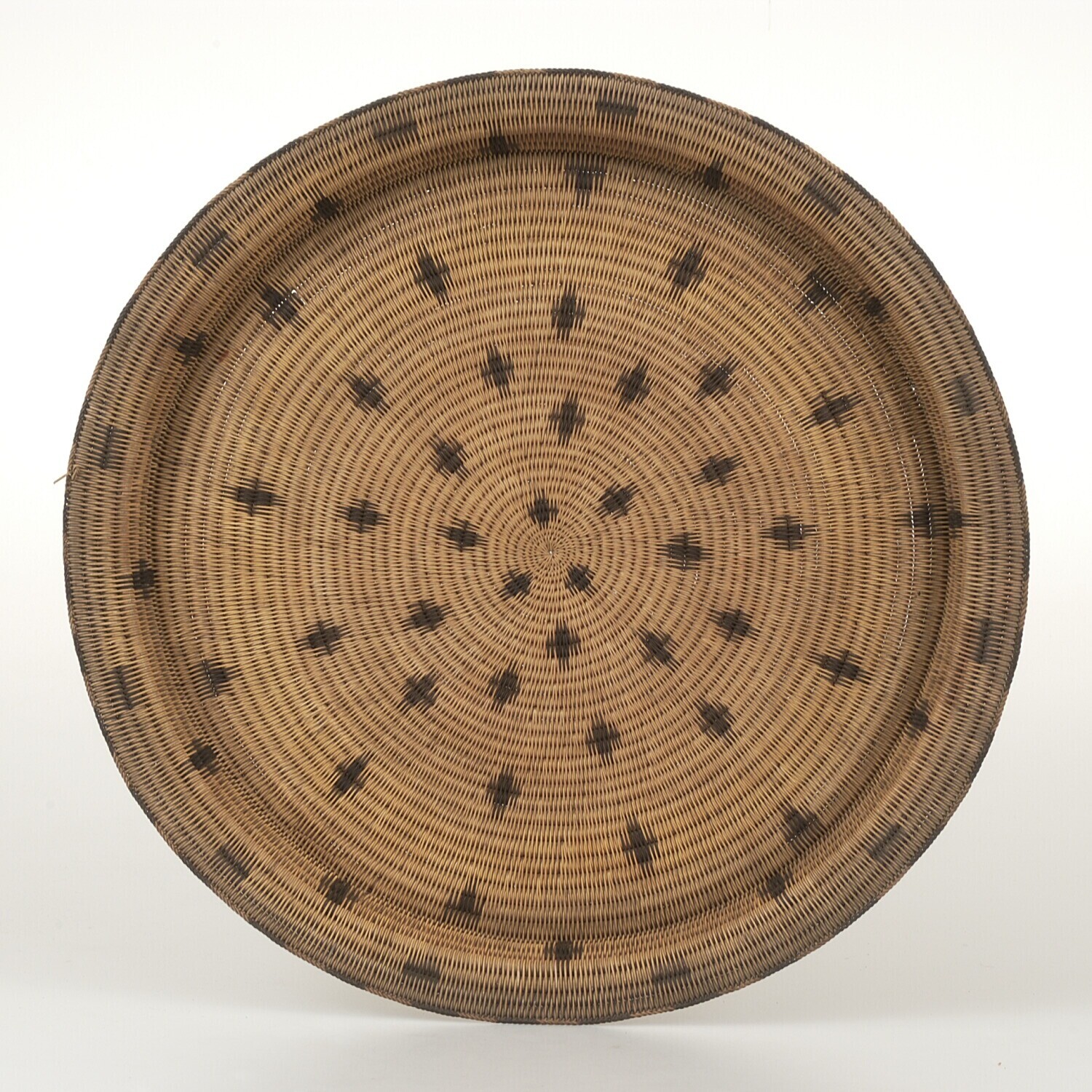 Gevlochten bord van rotan, behorende bij een set van vijf stuks van verschillend maat